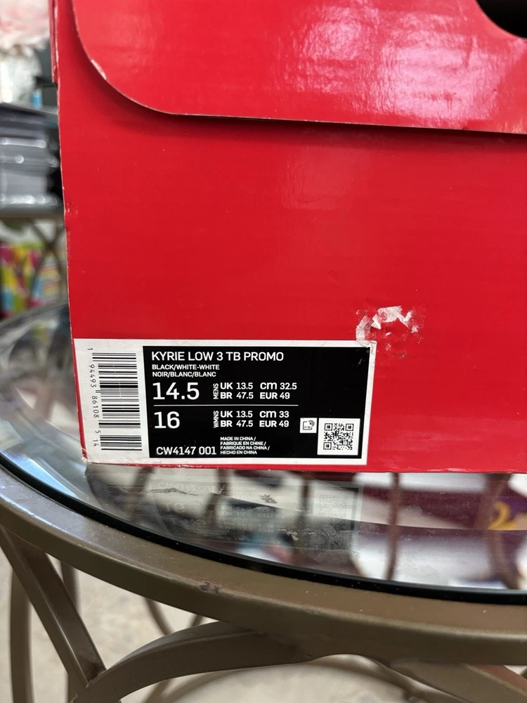 Nike Kyrie Low 3 TB Promo Black/White Basketball Shoes CW4147-001 Mens Size 14.5