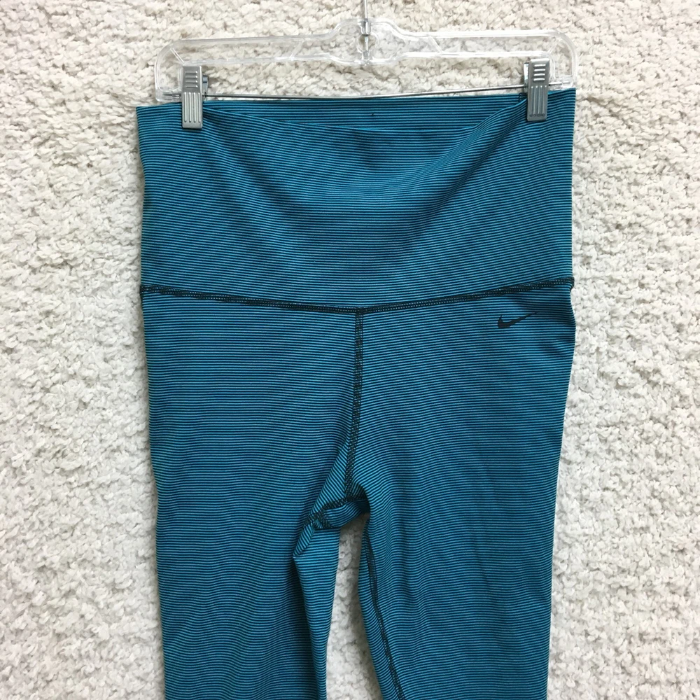 Nike Leggings Medium Adult Blue Striped High Rise Ankle Pants Dri Fit Yoga Women