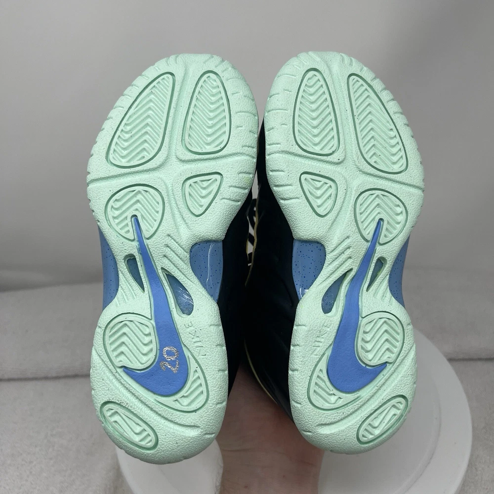 Nike Little Posite One PS Sneakers are black leather sneakers with a lace-up closure. They have a mid-top shaft style and a solid pattern. The sneakers are cushioned and comfortable, making them perfect for walking, school, and basketball. The outsole is made of rubber, and the lining is made of fabric. The shoes are available in kids' size 11C and UK size 10.5. The Nike Little Posite One PS Sneakers are designed for unisex kids and have a standard shoe width.