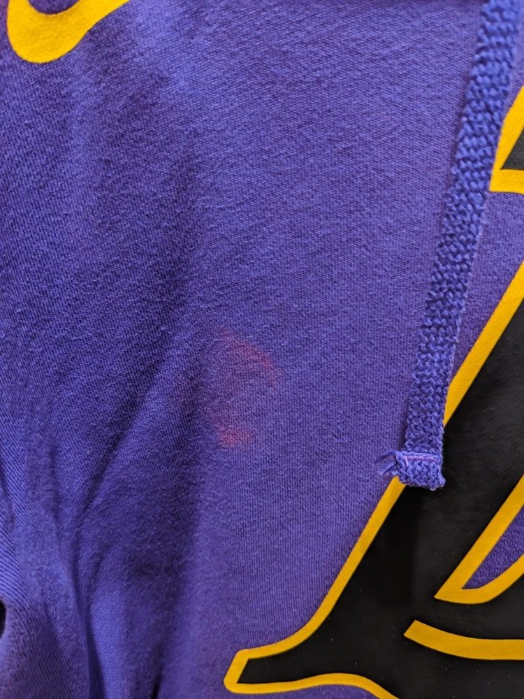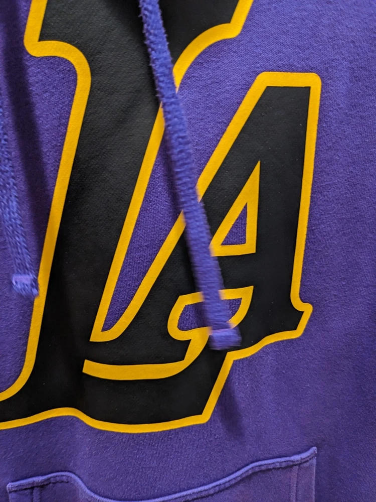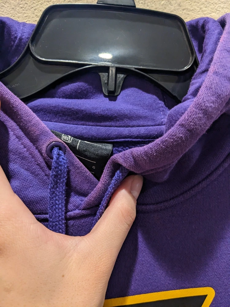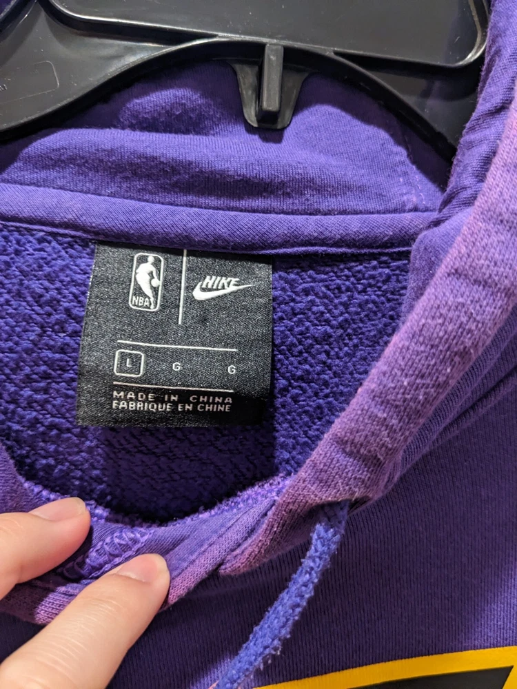 Team:Los Angeles LakersOfficially Licensed:YesBrand:NikeGender:MenColor:PurpleLeague:National Basketball Association (NBA)Size:LSport:BasketballPre & Post Season:Regular SeasonCountry/Region of Manufacture:ChinaProduct:Sweatshirt