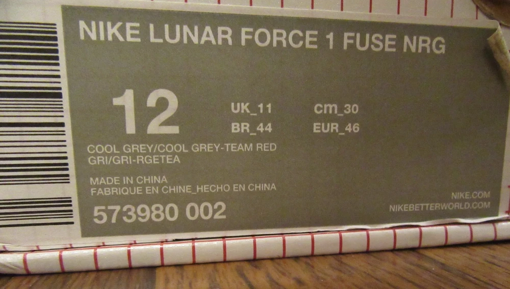 Nike Lunar Force 1 Fuse NRG Men's Size: 12 Colorway: Cool Grey/Cool Grey-Team Red Stylecode: 573980 002 Condition: Brand New In Box (Box Has Writing In Pen On Box Top, See Pics!) 2012 Air Force 30th Anniversary Release About: PRESTO WORLDWIDE (ebay user ID: presto2005) Over 20 Years on eBay & Over 10,000 Successful Transactions! - Presto2005 only sells 100% authentic merchandise. - All items are purchased from 100% authorized retailers or the manufacturers directly (All Supreme items are purchased directly from Supreme on their online store or in one of their few retail stores -Additional items not listed or pictured such as receipts, bags or stickers are not included! Presto2005 has completed tens of thousands of successful transactions. You can purchase with confidence as we take pride in our business. Check out our Feedback if you have any reservations. Presto2005 has been collecting, buying and selling 100% authentic fashion, footwear, streetwear, collectibles, memorabilia and more since the early 1990’s. Please be sure to regularly visit our store as new items are frequently added to our inventory of over 1,000 items. SHIPPING POLICY: - All orders will be shipped out within 2 business days of the purchase (usually sooner) - We only ship to the address provided by eBay. No Exceptions! - We take extra measures to package your item securely and neatly to protect your merchandise. - You can track your package online with the tracking number provided to you through eBay that will upload automatically once we process it. - Please be sure your shipping address is up to date and accurate. INTERNATIONAL BUYERS: - We only ship overseas through eBays INTERNATIONAL SHIPPING PROGRAM. If you are not a part of this program or your country is not eligible you will not be able to complete the transaction. - We do not ship directly overseas. All items would ship through the ebay International Shipping Program *** Additional shipping charges through this program are regulated by eBay. These fees are not something we can change or negotiate. *** PAYMENT: - Approved eBay payment methods only! Please check out the other items in our store: https://www.ebay.com/str/PRESTO-WORLDWIDE?_trksid=p2047675.l2563 Don't forget to email us any questions you may have - we are more than happy to help! Thank you again for shopping with Presto2005!