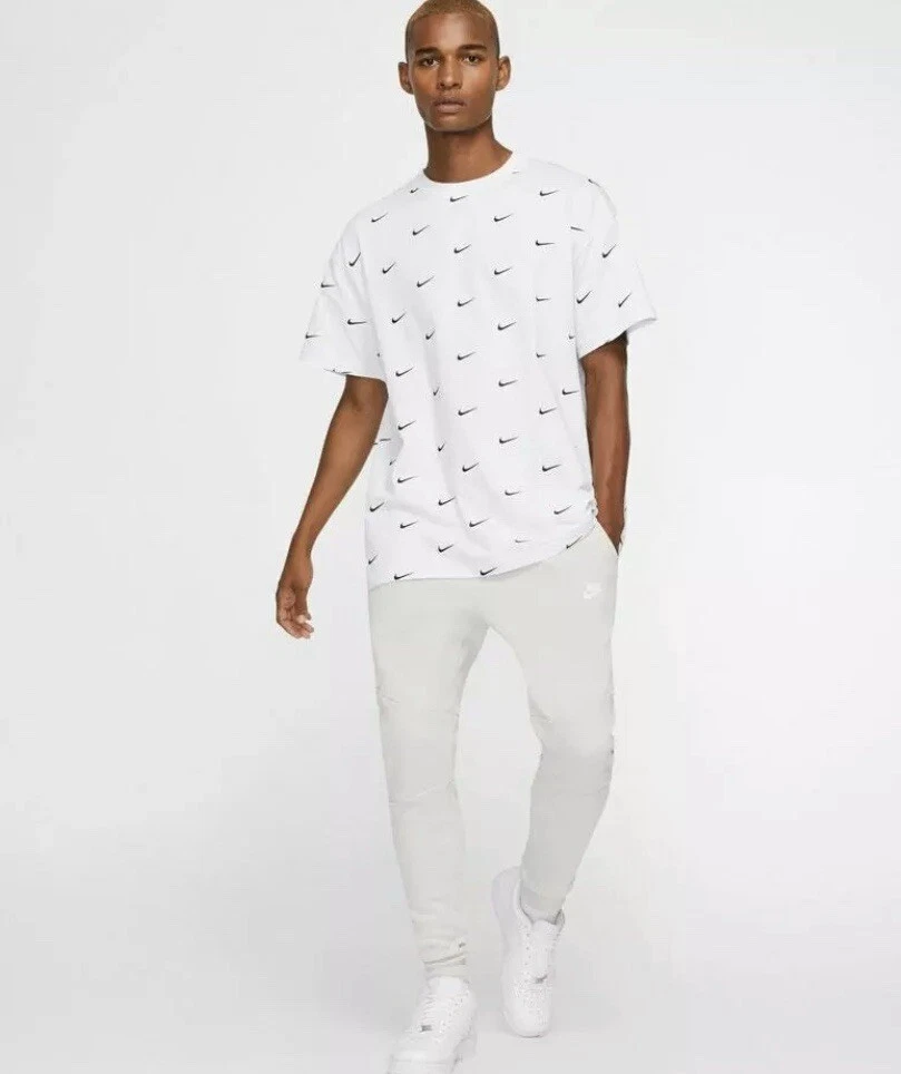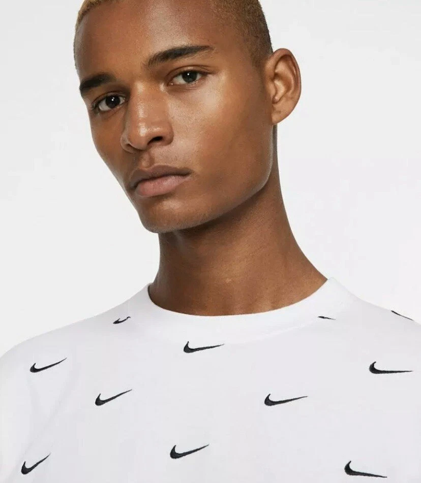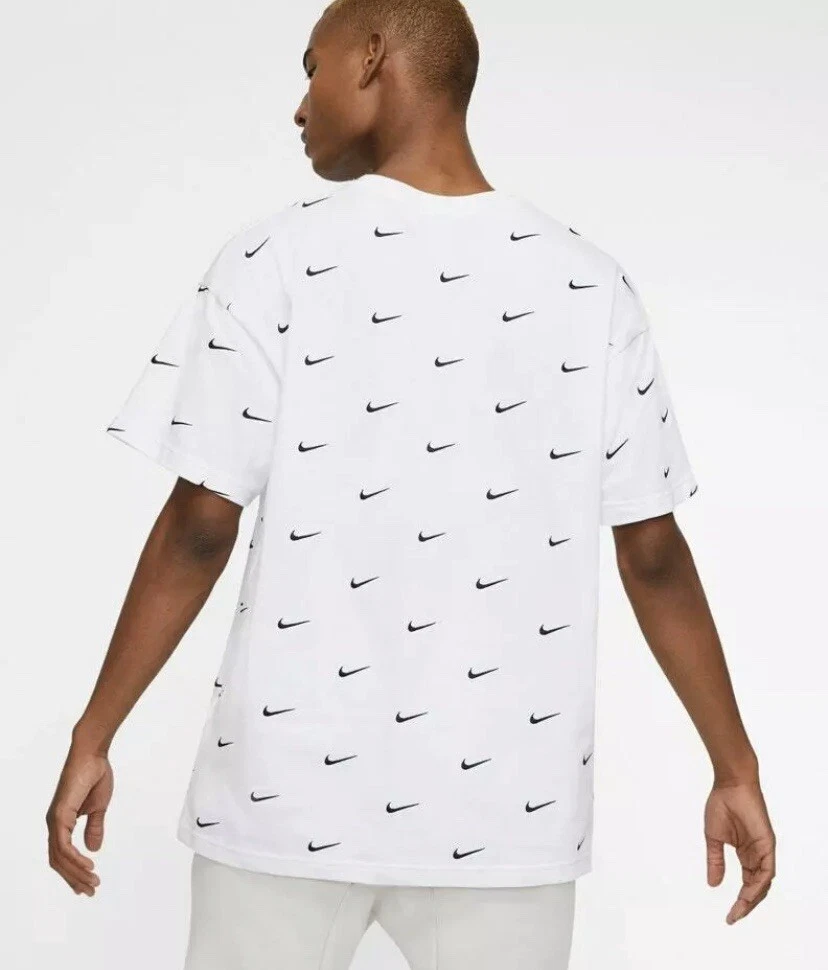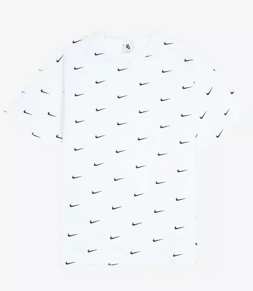 HomeNike Men's All Over Swoosh Logo White T-Shirt Size M Medium CK4094 100