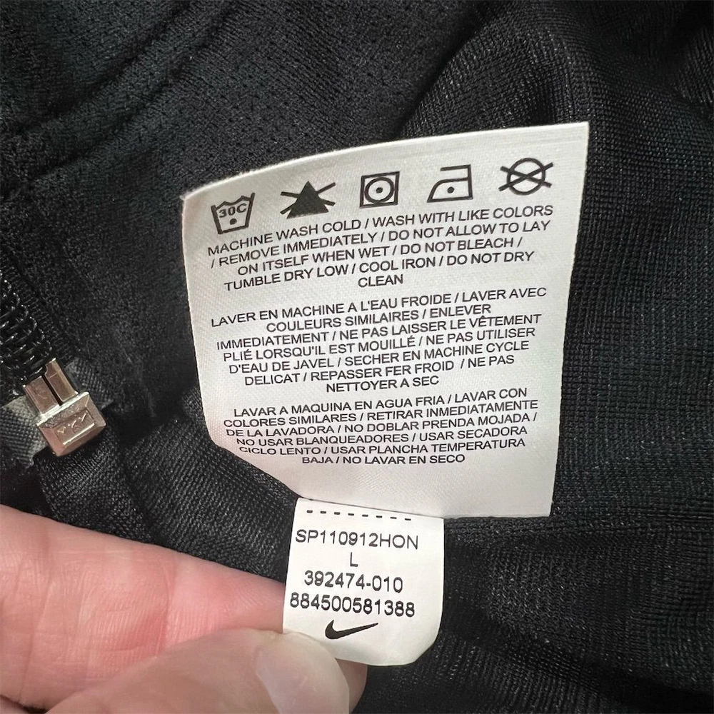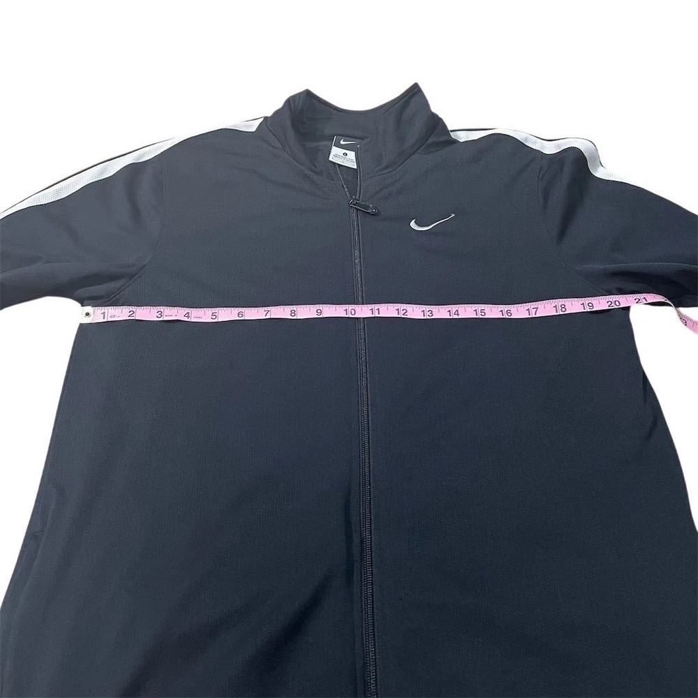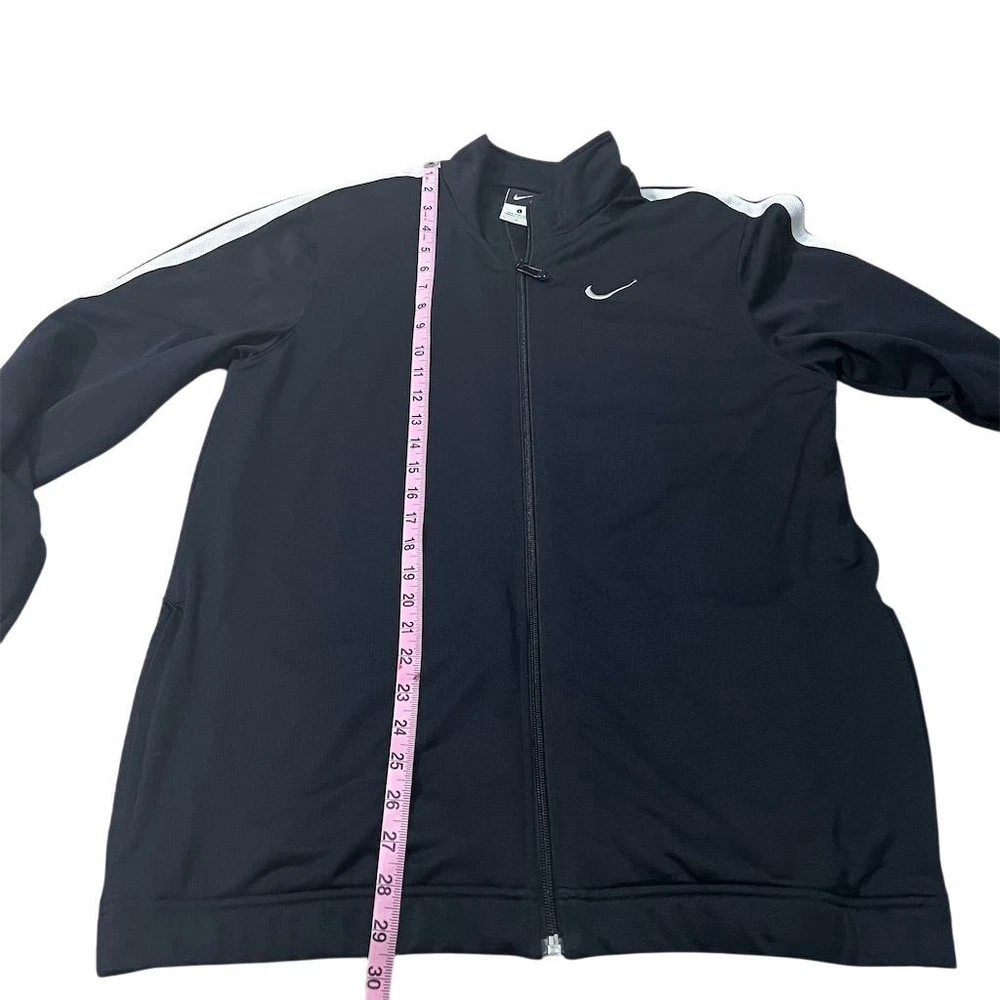 Stay stylish and protected with the Nike Men's Windbreaker Jacket in sleek black. Designed for those who refuse to let the weather dictate their plans, this post-Y2K jacket features long sleeves and a convenient zipper front closure, making it perfect for layering. The iconic Nike swoosh adds a touch of sporty flair, while the solid pattern ensures versatility. Made from durable polyester, it's machine washable for easy care. This pre-owned jacket is in great condition, ready to accompany you on your next adventure. Brand: Nike. Type: Jacket. Size: L. Style: Windbreaker. Size type: Regular. Outer shell material: Polyester. Department: Men. Color: Black. Features: Long sleeves, Zipper front closure, Iconic Nike swoosh. Pattern: Solid. Country region of manufacture: Malaysia.