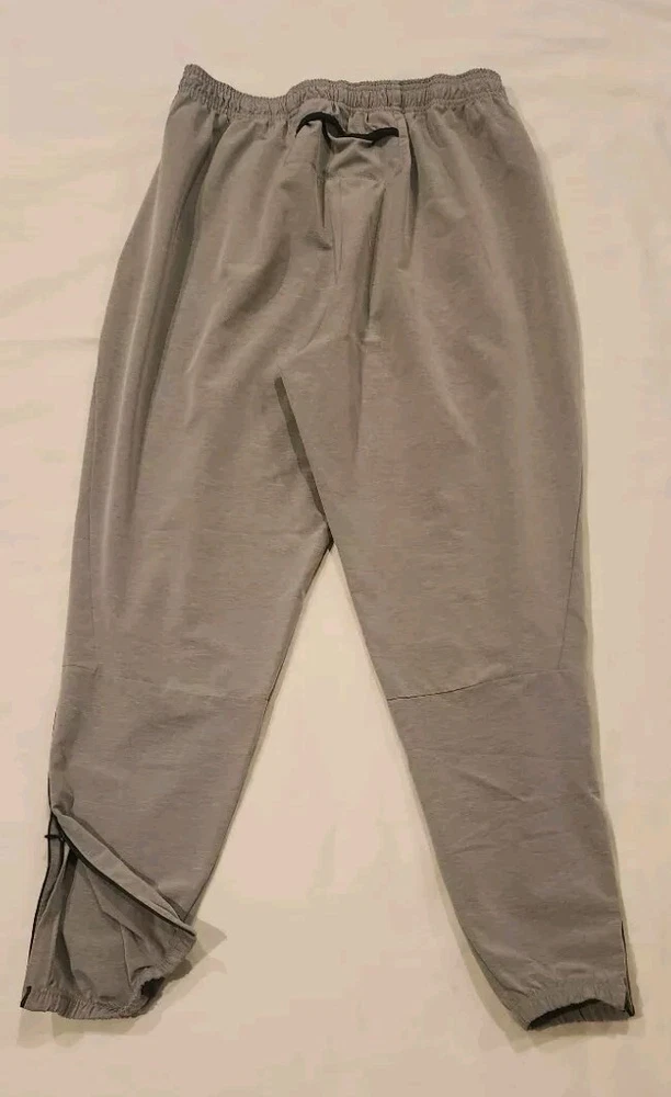 Polyester/Spandex Drawstring Two zip pockets on the side Pocket on the back Zip ankle In good condition except minor stain like showing on the photo!