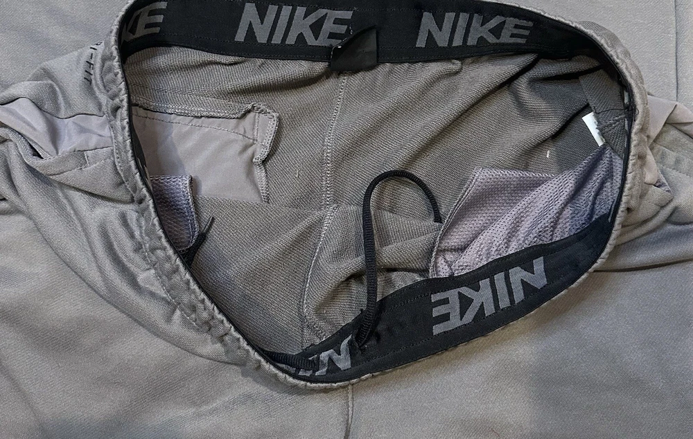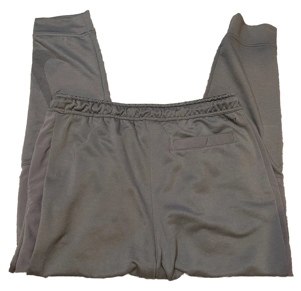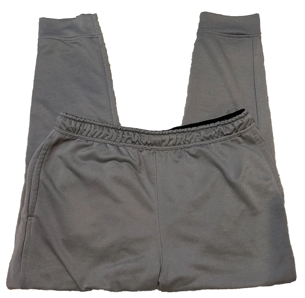 Upgrade your activewear game with these Nike Men's Dri-Fit joggers in grey color block design. These pants are perfect for gym & training, walking, school, cross-training, running & jogging. The pull-on closure and elastic waist provide comfort and the lightweight, stretchy material with moisture-wicking features ensures you stay dry and comfortable during your workouts. These joggers also come with pockets to keep your essentials close and are made with the Nike Dri-FIT product line for superior quality. The XL size with a waist size of 34 inches and inseam of 30 inches is perfect for men who want to make a statement with their activewear. Add these pants to your collection for a stylish and comfortable workout experience. No rips holes or stains! Excellent pre-owned condition!
