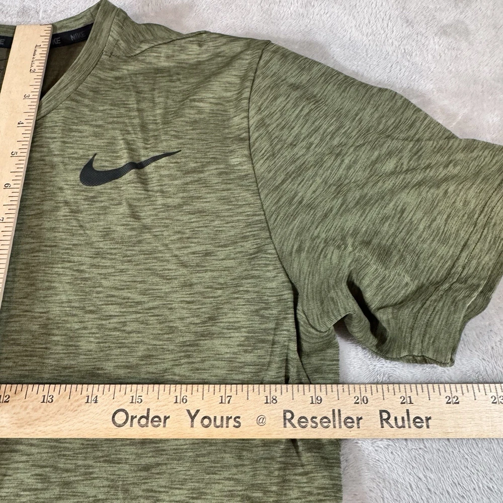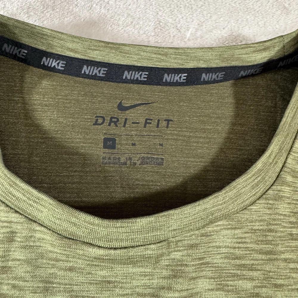 This Nike Men's Dri-Fit Training T-Shirt is a must-have for any athletic man. The shirt is made of 100% polyester knit fabric, making it lightweight, breathable, and easy to care for. Its green color and solid pattern are perfect for any sports occasion, whether it's travel, activewear, or workwear. The shirt features a crew neck and short sleeves, making it suitable for any season, be it summer, fall, or spring. The Nike Dri-Fit model is perfect for gym & training, cross-training, and running & jogging. The shirt is machine washable, ensuring convenient cleaning. It also features a Nike logo accent, adding a touch of style to your sports gear. This T-shirt is a basic yet essential addition to your activewear collection.