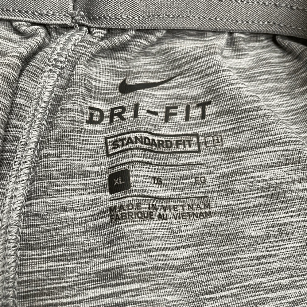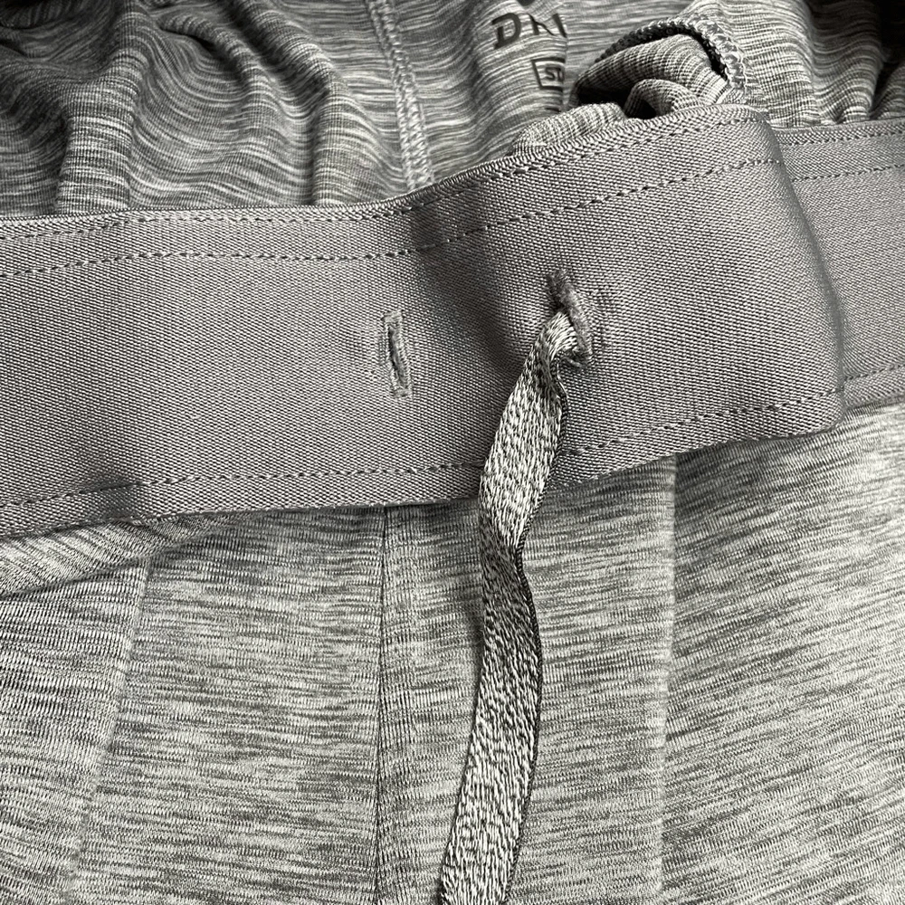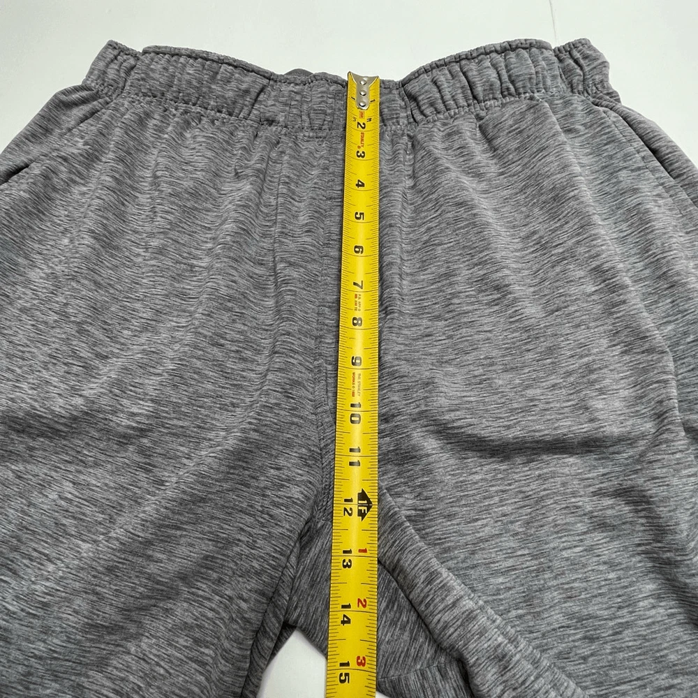 Nike Men’s Dri-Fit Yoga Training Shorts Gray Size XL Nike AT5693-056 Approximate measurements while lying flat are Waist: 16” unstretched Rise: 12” Inseam: 8” Material: 88% polyester, 12% spandex Athletic shorts, gym shorts, yoga shorts The drawstring is out in one side and needs to be fed back through. Shorts function fine without it.