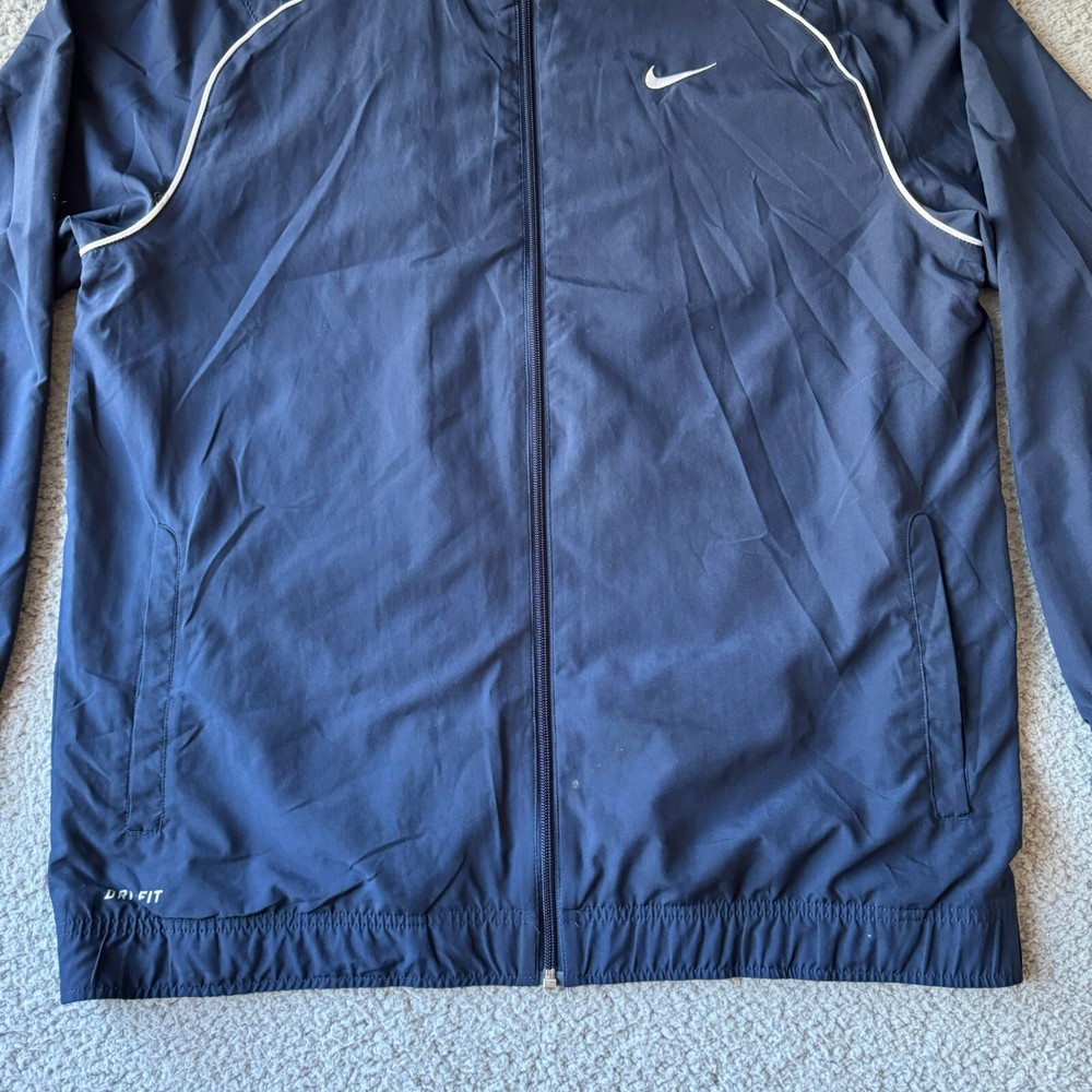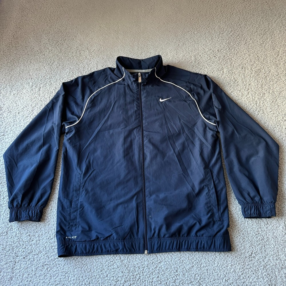 Nike Jacket Mens Large Blue Windbreaker Dri-Fit Full Zip Track Athletic Sports Condition: Pre-owned. Good condition. Please review all photos carefully to assess condition and check measurements for best fit. Please let us know if you have any questions. Thanks for shopping with us.