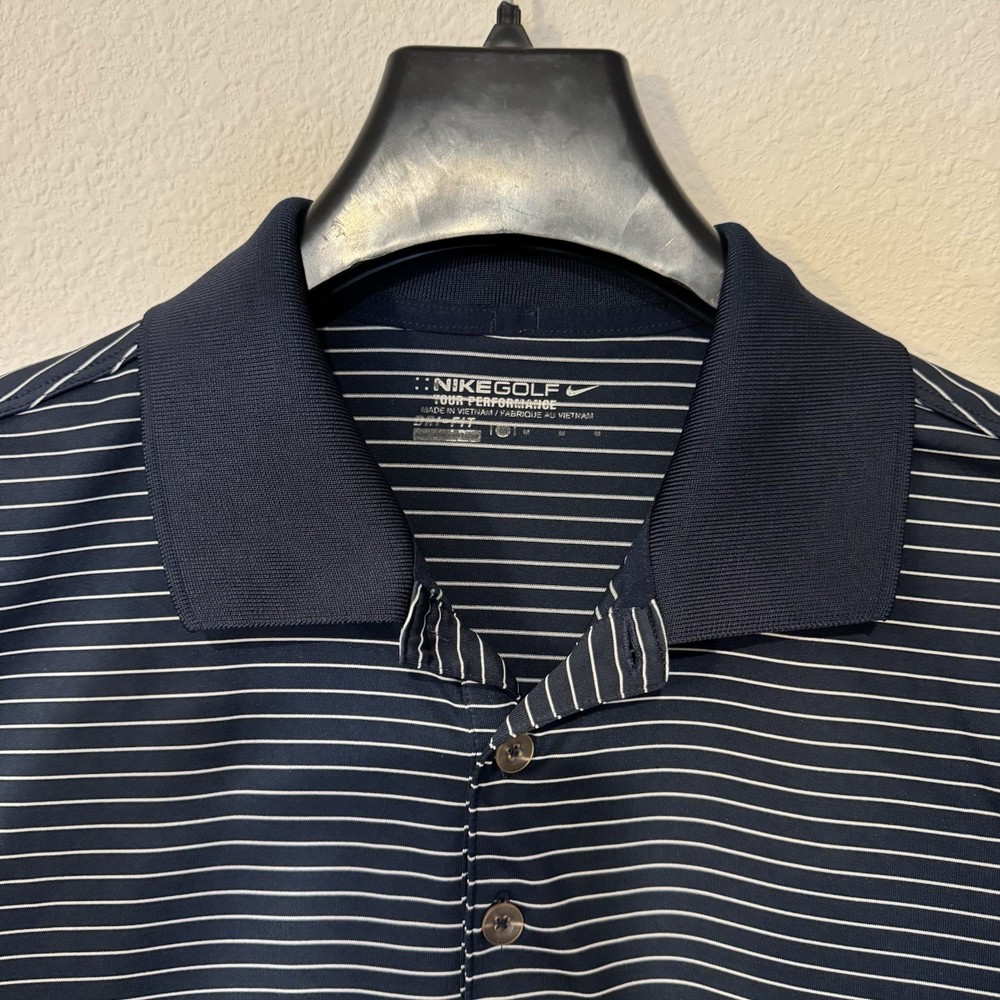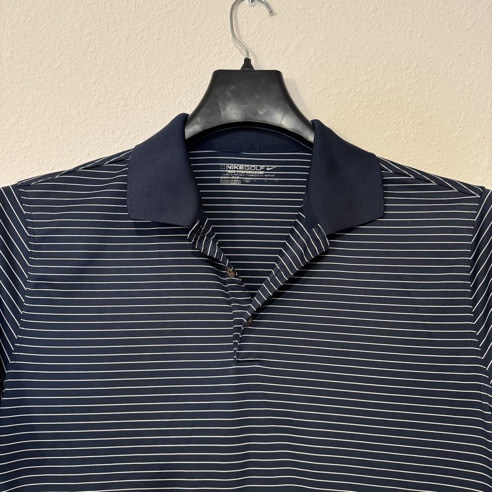Fabric Wash: Medium Fit: Regular Size: M Neckline: Collared Vintage: No Features: Classic polo collar,Nike swoosh emblem,Button-up placket Brand: Nike Material: High-quality fabric Color: Blue Season: Summer Country of Origin: Vietnam Department: Men gtin13: Does not apply Pattern: Striped Performance/Activity: Golf,Casual,Sports Sleeve Length: Short Sleeve UPC: Does not apply Garment Care: Machine Washable Type: Polo Size Type: Regular
