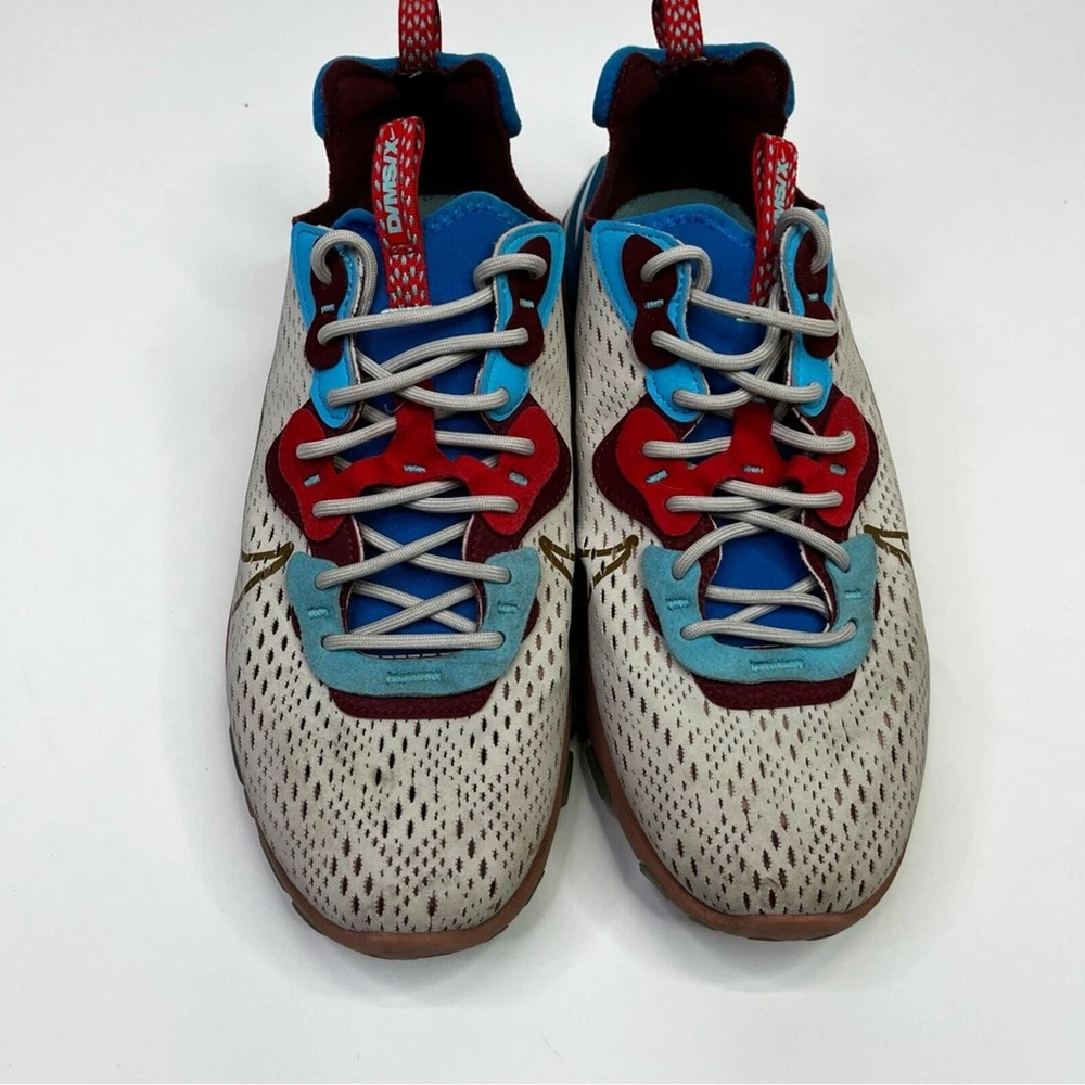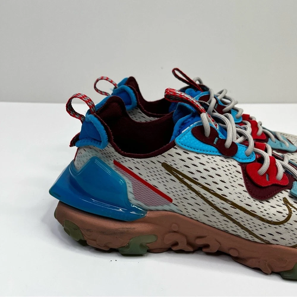 Nike Men's React Vision Desert Oasis sneakers multicolor - 11 Brand: Nike Size: 11 Type: Sneakers Color: Light Bone/Terra Blush/Photo Blue Closure: Lace Up Condition: Pre-owned. In Good Condition. The React Vision 'Desert Oasis' released as part of Nike's concept-drive D/MS/X line. Built with seamless mesh, the shoe's neutral base is highlighted by leather eyelets. Tongue and heel pull-loops provide easy on and off, while an external heel counter is included for stability. Underfoot, the React midsole provides cushioning, giving way to rubber pods on the outsole for traction. Comfortable, Walking, Outdoor, Workout, Athletic, Sporty, NIKE, Comfy, Everyday