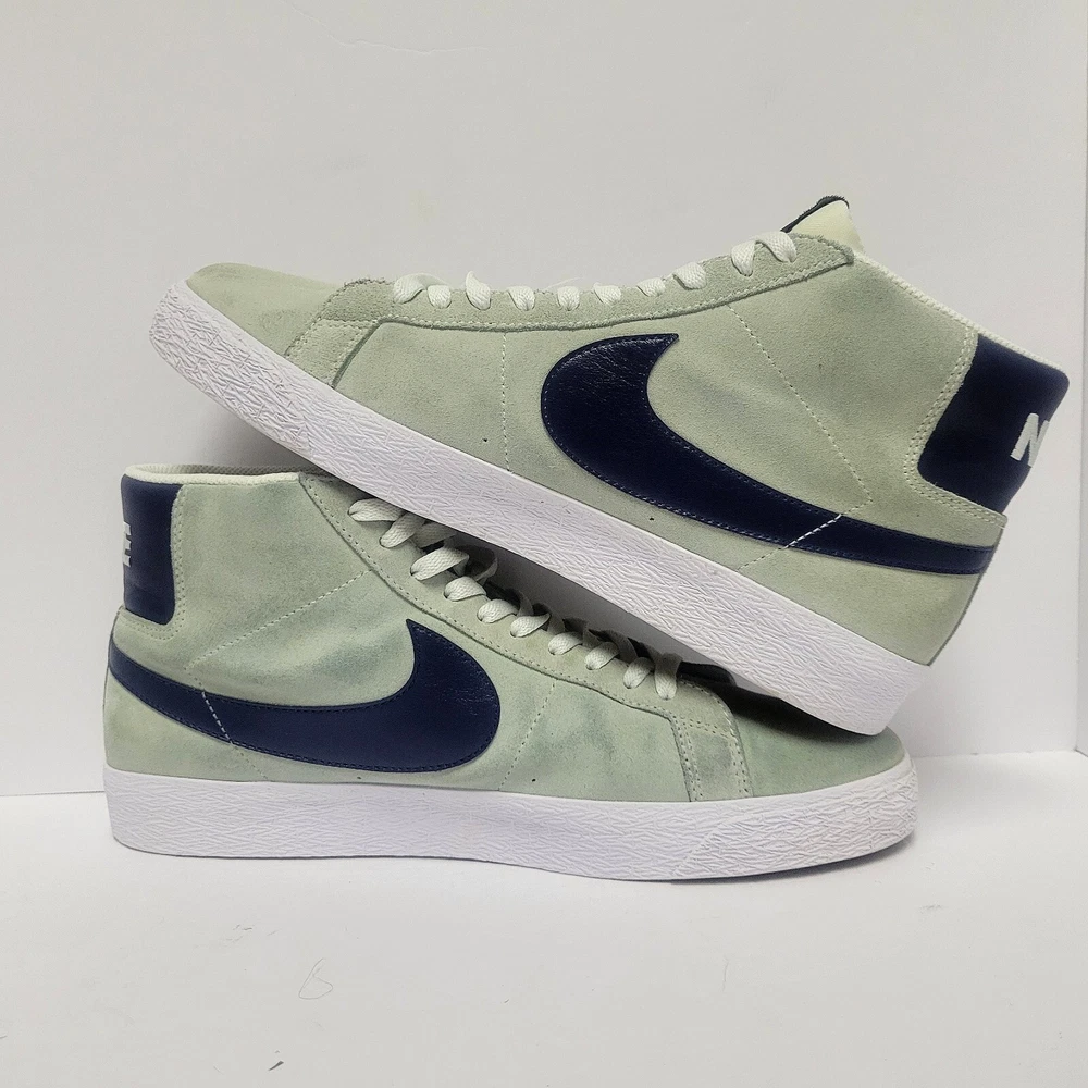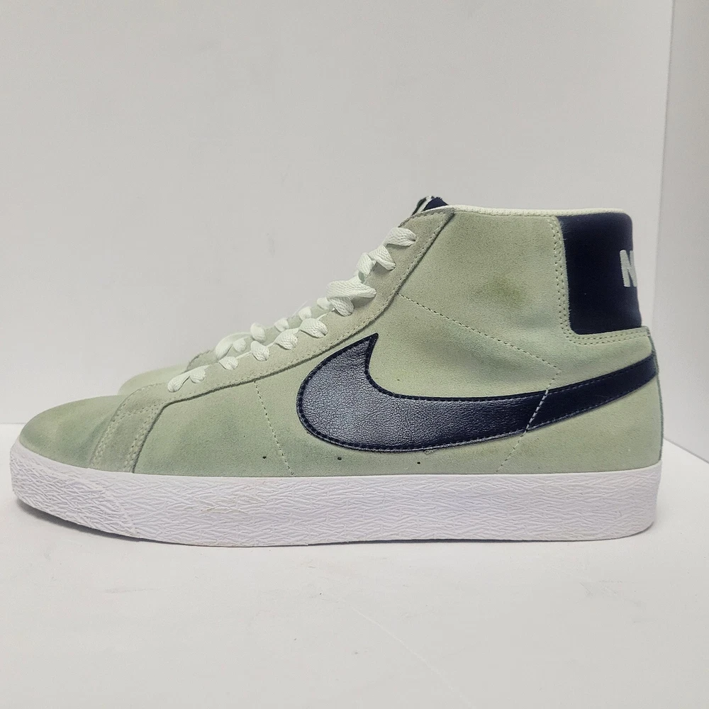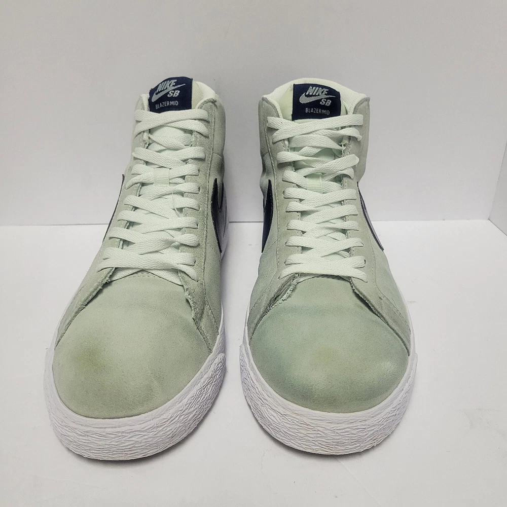 Elevate your sneaker game with these Nike Men's SB Blazer Mid Retro shoes. These sneakers have a solid mint green colorway and a mid-top shoe shaft style. The lace-up closure ensures a secure fit, while the rubber outsole provides comfort and breathability. These athletic shoes are perfect for casual occasions and can be worn in all seasons, including winter, summer, fall, and spring. The Nike SB Blazer Mid Retro sneakers have a standard shoe width and are available in UK size 9 and EU size 44. The upper material is made of suede, and the shoes are not customized. Add these sports-themed sneakers to your collection today!