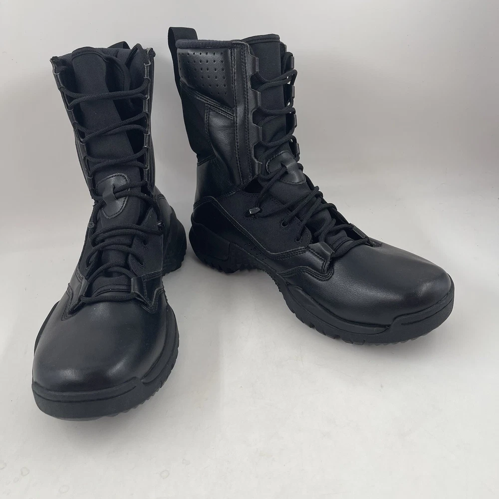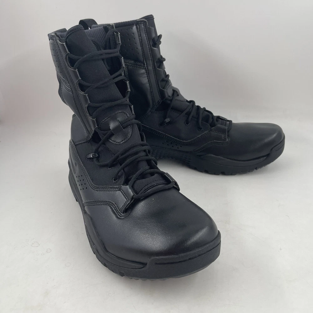 BRAND NEW WITHOUT TAGS Men’s Size 9.5 Nike Men’s Special Field Boots 2 SFB Black Tactical 8” Boots Please see photos for details of shoes as they are part of the description •The Nike Men’s 8” Special Field Boots is a training shoes built for responders. It features a combination of durable materials for comfortable support andd a outsole with an extraordinary grip pattern. The inner design provides grip and durability that can handle a wide range of floors. Brand new. No original box. Carefully packaged and shipped same/next business day Please feel free to ask questions All items come from a smoke-free/pet friendly environment Please make sure to follow me. I list new inventory daily SH4198/4343PE-BH02