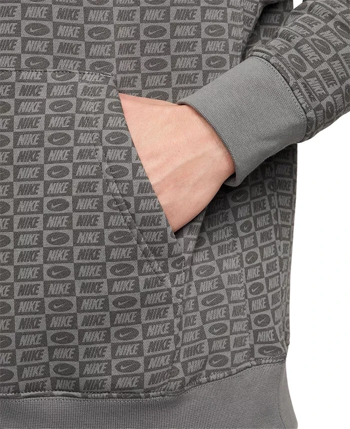 To help elevate your hoodie game with some signature style, Nike gave one of their most comfortable basics a statement-making allover print. Imported Kangaroo pocket Allover print Drawstring hood Long sleeves with ribbed cuffs Logo at left chest