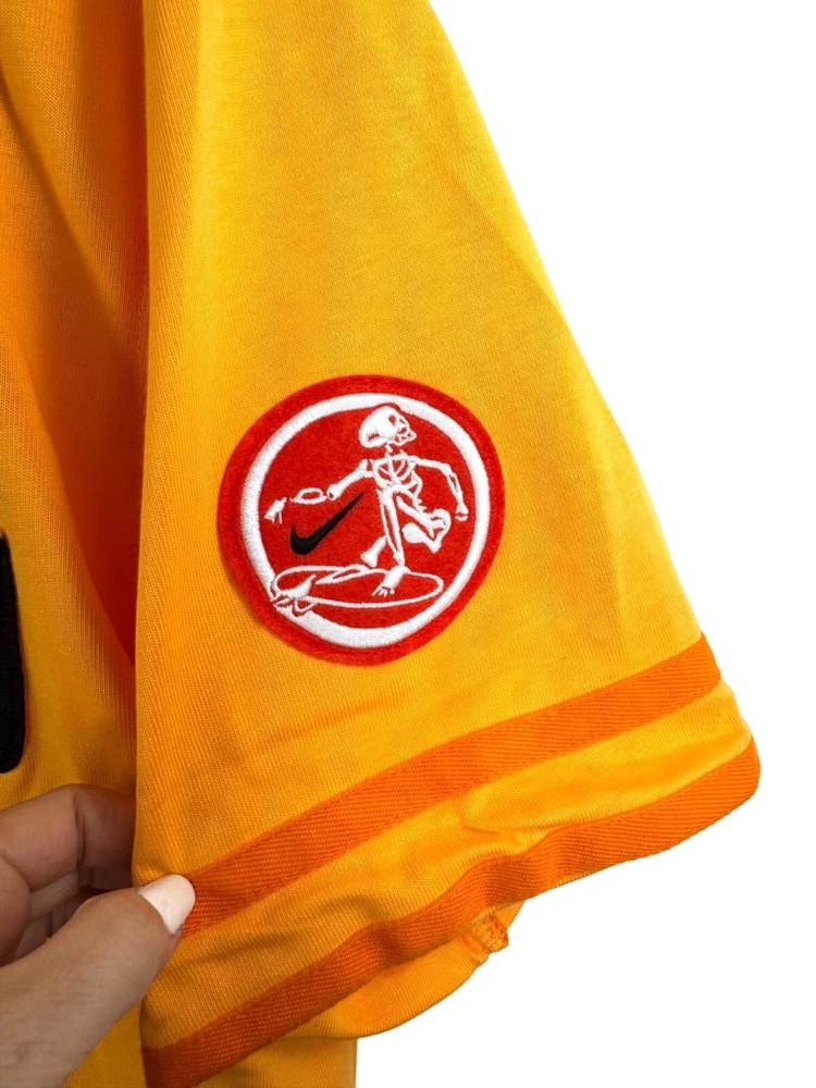 New with Tag Nike Men's Sportswear Baseball Jersey - Orange This soft cotton Nike Men's Sportswear Baseball Jersey - Orange combines an athletic aesthetic with beach vibes for a look you can wear beyond game day. Featuring buttons, embroidered details and felt patches, it brings surf style to a classic baseball silhouette. 100% cotton Flat lay: pit to pit 23.5" Length 32' baseball, embroidered, 90s, classic, street wear, hipster, sports, vibrant, active, work out, hip hop, retro, colorful PLEASE check all flat lay measurements and listings carefully BEFORE PURCHASE!I put in a lot of work into hand measuring and researching each items as best as I can! Thank you so much for your consideration! Please note that: RETURN SHIP FEE IS PAID BY THE BUYER! If you are not too familiar with flat lay measurements, I recommend taking a measurement of your own clothes that you feel comfortable and compare with the measurement I provide. For returns: The items MUST BE IN SAME CONDITION AS SOLD for full refund! We all don't like returns and let's work together to minimize! Please note that RETURNS ARE NOT ACCEPTED FOR NEW WITH TAG OR NEW WITHOUT TAG ITEMS!