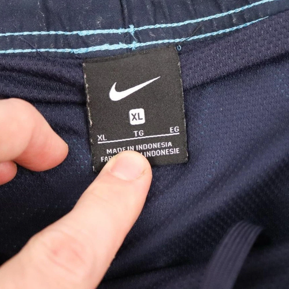 Get ready for a comfortable and stylish day at the beach with these Nike Men's Swim Trunks. These blue trunks are made of lightweight and breathable polyester material with a mesh lining for added comfort. They feature a drawstring and above-the-knee design for a secure and comfortable fit. These trunks also come with built-in briefs, pockets, and the Nike logo for added style. Perfect for a day of swimming and recreational activities, these trunks are machine washable and easy to care for. Don't miss out on this opportunity to add a fashionable and functional piece to your summer wardrobe. Tag Size: Men’s XL Best Fit: * Men: XXL Approximate Flat Measurements: * Waist: 21” * In Seam: 6” Condition: No Noticeable Flaws All items are second hand, many being vintage and may have small imperfections. Anything major is noted.