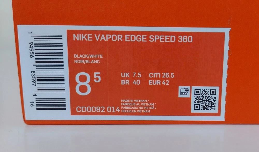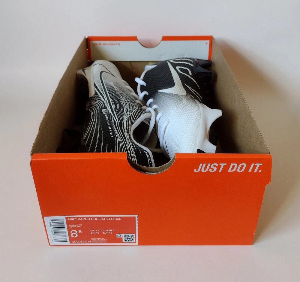 Nike Men's Vapor Edge Speed 360 Football Cleats Black White Size 8.5 CD0082-014 BRAND NEW WITH BOX (Box Lid Missing) 100% AUTHENTIC PRODUCT The item you see in the photos is the actual item you will receive if purchased. Free shipping with USPS Priority Mail. Please view all photos, details, and description. Feel free to contact me if you have any questions.