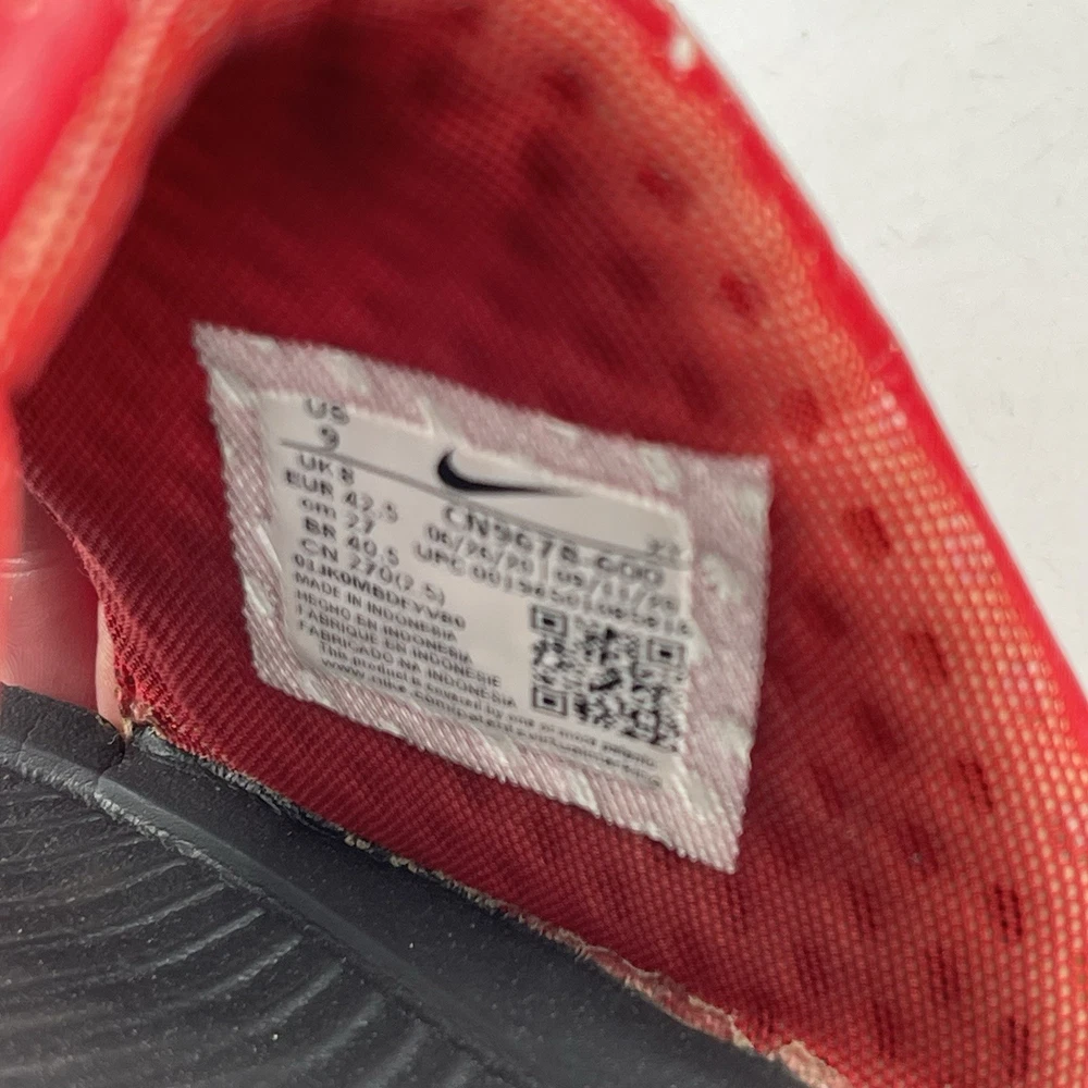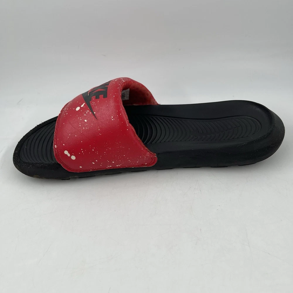 Very Good Preowned Condition Men’s Size 9 Nike Men’s Victori One - Size 9 - Red Splatter Print Slide Shoe Please see photos for details as they are part of the description Condition: Very Good. Normal signs of use. Gently worn, no stains, no holes or tears. See photos for details. Legendary Comfort, Remastered From the beach to the streets, the Nike Victori One perfects a classic, must-have design. Delivering lightweight comfort that’s easy to wear, it features new, softer foam that feels comfortable while the contoured footbed with grip pattern helps cradle and holds your foot in place. The wide, padded strap feels as good as it looks. •The new, softer foam and mechanical cushioning adds unbelievable comfort that lasts. •The contoured footbed cradles and supports your foot while its grip pattern helps keep your foot in place •the rolled top edge of the strap adds to the comfort while the thick padding feels soft •The wider strap adds additional space, accommodating more foot sizes •The tooling features a new pattern, for added traction •Bold “Nike” and SWOOSH on the straps lets you represent your brand •CN9678-006 Gently used. No original box. Carefully packaged and shipped same/next business day Please feel free to ask questions All items come from a smoke-free/pet friendly environment Please make sure to follow me. I list new inventory daily SH4441/01PE-R08