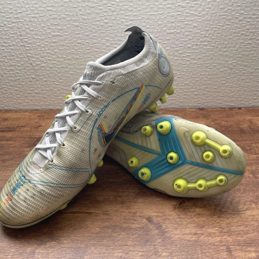 Nike Mercurial Vapor 14 Elite Ag 27.0Cm Soccer Cleats Key Features **Product Description:** Introducing the Nike Mercurial Vapor 14 Elite AG soccer cleats from the 2021 Summer Collection, designed for players who prioritize speed. These low-cut cleats feature a new Flyknit upper that is lightweight and constructed with only essential materials for optimal performance. - **Color:** Not specified - **Material:** Lightweight mesh - **Size:** Not specified (please refer to size chart) - **Condition:** Used; please note that quality seekers and sensitive buyers should refrain from purchasing. No cancellations, returns, or claims accepted. **Detailed Features:** - All Conditions Control (ACC) for reliable touch in any weather - NikeGrip technology insole to prevent slipping during intense matches - Nike Aerotrak zone in the forefoot plate for explosive acceleration - Enhanced midfoot rigidity for a bouncy feel - Designed for artificial grass with multi-directional traction Item Specifics: - C:Brand: Nike - C:Type: Specifications Brand Nike Country Japan Product Description Item Title Nike Mercurial Vapor 14 Elite Ag 27.0Cm Payment Supports managed payments Please pay within 5 days after auction is finished. About Us We are located in Japan. It's our pleasure to make you happy by proposing our recommend item. If you have any questions or request about items, please feel free to ask us. International Buyers - Please Note: -Import duties, taxes, and charges are not included in the item price or shipping charges. These charges are the buyer's responsibility. -Please check with your country's customs office to determine what these additional costs will be prior to bidding/buying. -These charges are normally collected by the delivering freight (shipping) company or when you pick the item up - do not confuse them for additional shipping charges. -We do not mark merchandise values below value or mark items as - gifts - The US and International government regulations prohibit such behavior. Thank you for your understanding.