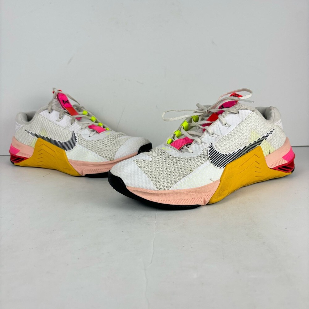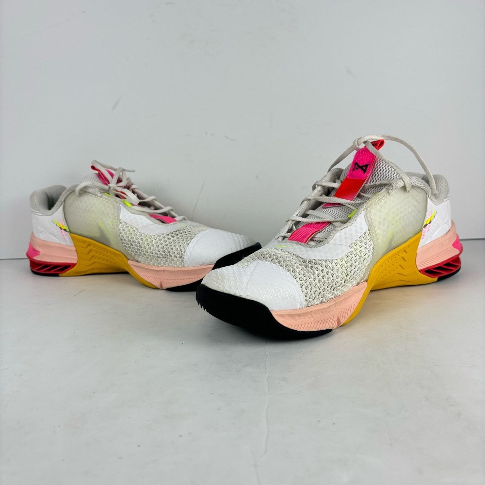 Nike Metcon 7 White Bright Crimson Cross Training Shoes womens size 8.5 in good condition no holes and tread is still good as shown in pics has been thoroughly washed before listing refer to pics before purchasing as all defects are shown