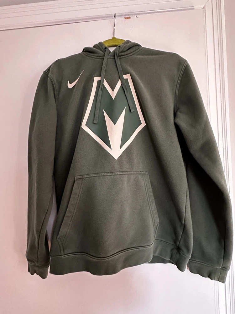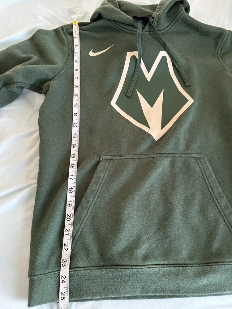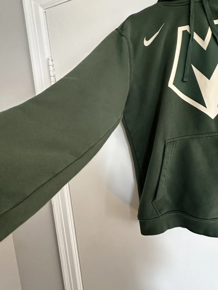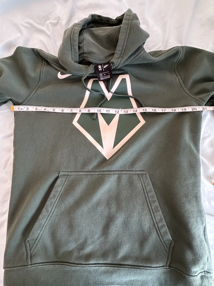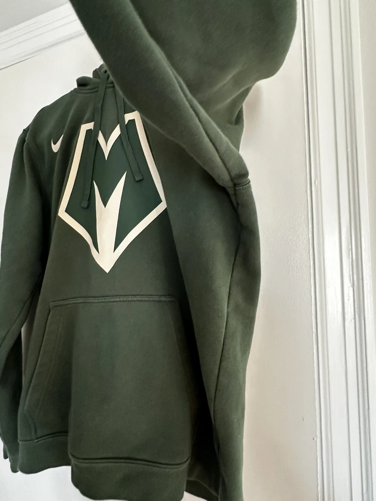 Nike Milwaukee Bucks Mens City Edition Pullover Hoodie Green Hoodie Medium. Kangaroo pocket. Drawstring hood. Soft. Nike swoosh. Lightly used. No rips, stains or defects. Please see pictures for measurements.