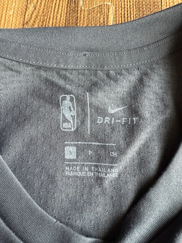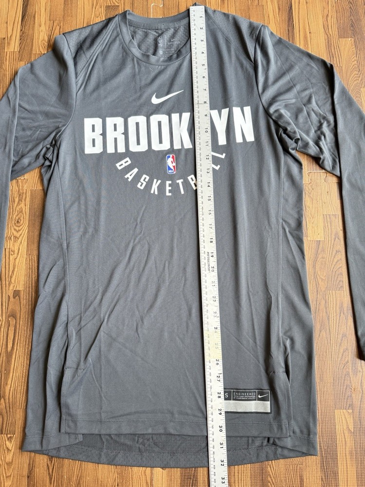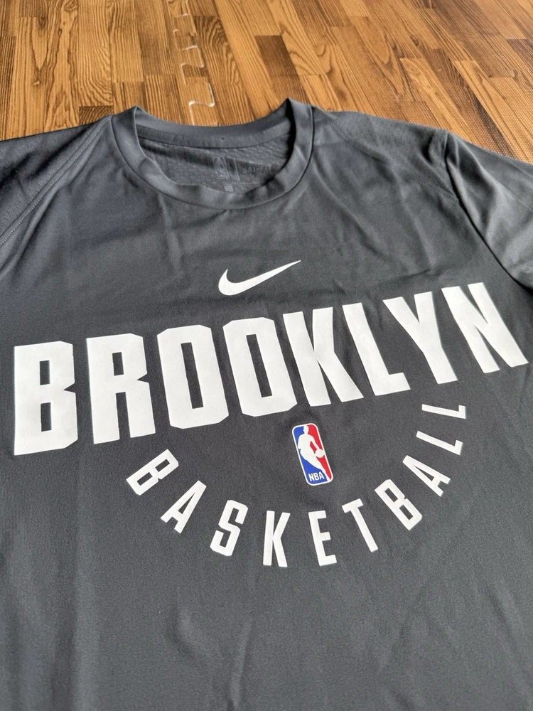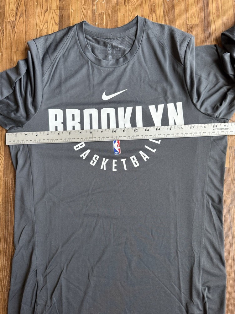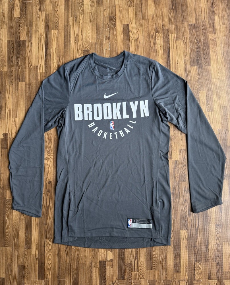 Authentics Pregame Practice Warmup Shootaround Elevate your game-day attire with the Nike NBA Brooklyn Nets Shooting Shirt, a player-issued pregame essential donned by the likes of Kevin Durant himself. Crafted with precision, this shirt is a testament to the nets' dedication to quality, featuring a sleek gray colorway that complements the team's iconic palette. Its size small fits snugly, catering to a tailored look that's both stylish and comfortable. Embrace the spirit of the regular season with this officially licensed NBA product, proudly manufactured in Thailand. Whether you're courtside or cheering from home, this shirt is a must-have for any die-hard basketball fan or collector of Brooklyn Nets memorabilia. The shirt's care instructions are included, ensuring you maintain its impeccable appearance throughout the season and beyond.