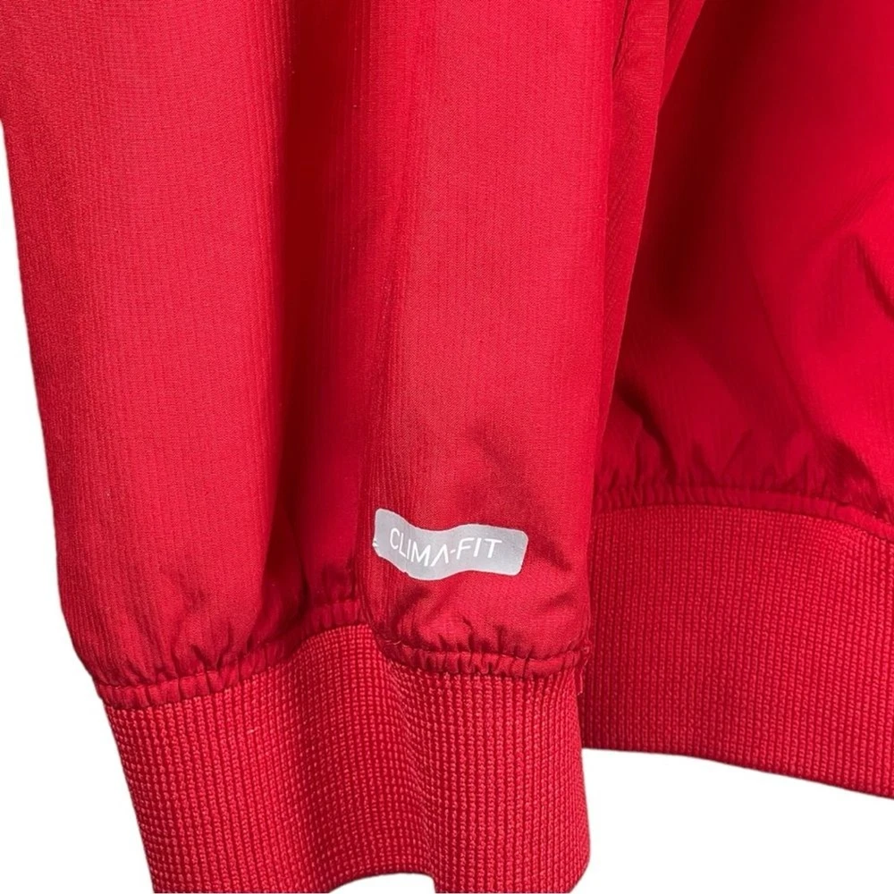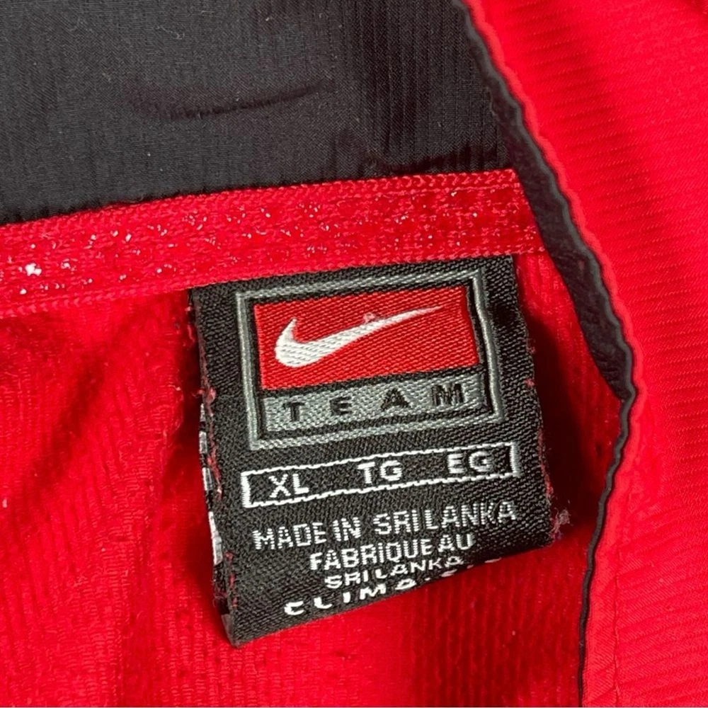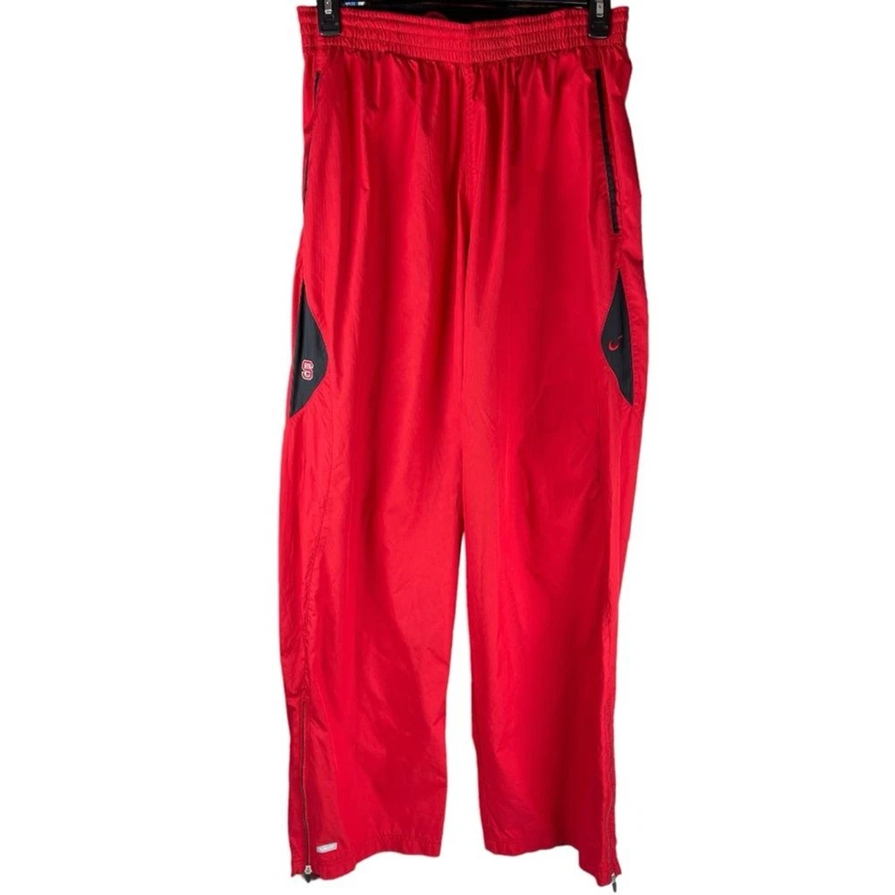 Nike NC State North Carolina Red 2 Piece Tracksuit Athletic Jacket Pants Set XL Show your spirit for NC State with this sporty two piece tracksuit set from Nike. Size: XL Color: Red Matching two piece set Jacket has zip up front closure, long sleeves, embroidered NC State logo and pockets. Pants have elasticized stretch waistband with adjustable inner drawcord, zipper pockets, and zipper leg hems. Polyester ClimaFit Measurements shown in photos Great condition