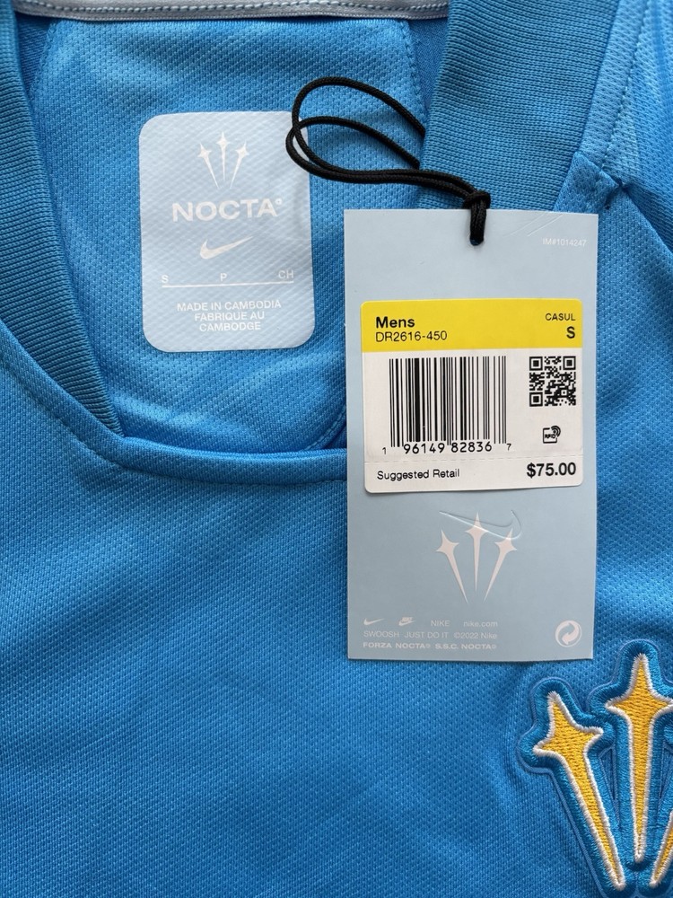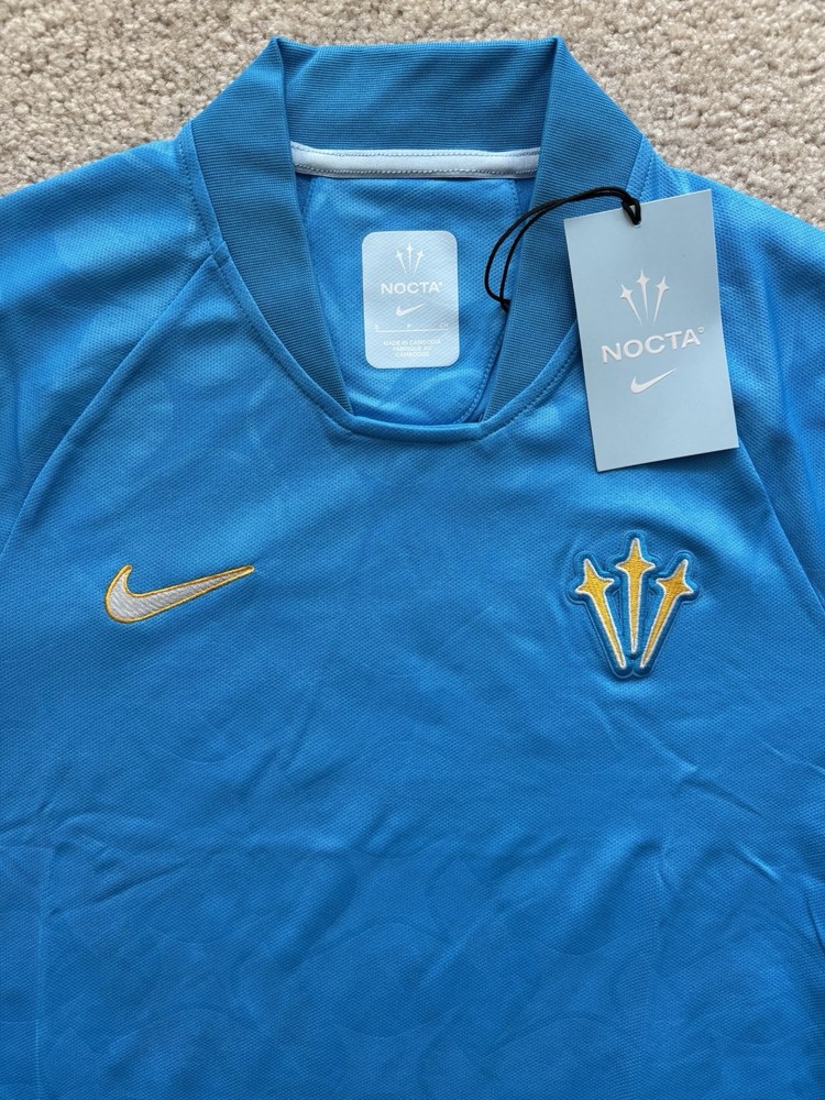 Get away in this breezy collection by NOCTA. Inspired by the endless beaches and incredible sunsets of Drake’s favorite vacation destination, each piece draws from the turquoise waters and white-sand beaches of Turks and Caicos. This light, double-knit jersey helps keep you dry and comfortable, while crafted details and a NOCTA graphic bring the energy. Send your regards...distant regards. Benefits Designed to feel relaxed through the chest and body for an athletic fit you can layer. Lightweight fabric moves sweat away from your skin for quick evaporation, helping you stay dry and comfortable. Product Details 100% polyester Machine wash Imported Shown: Blue Glow/White/White Style: DR2616-450 Country/Region of Origin: Cambodia