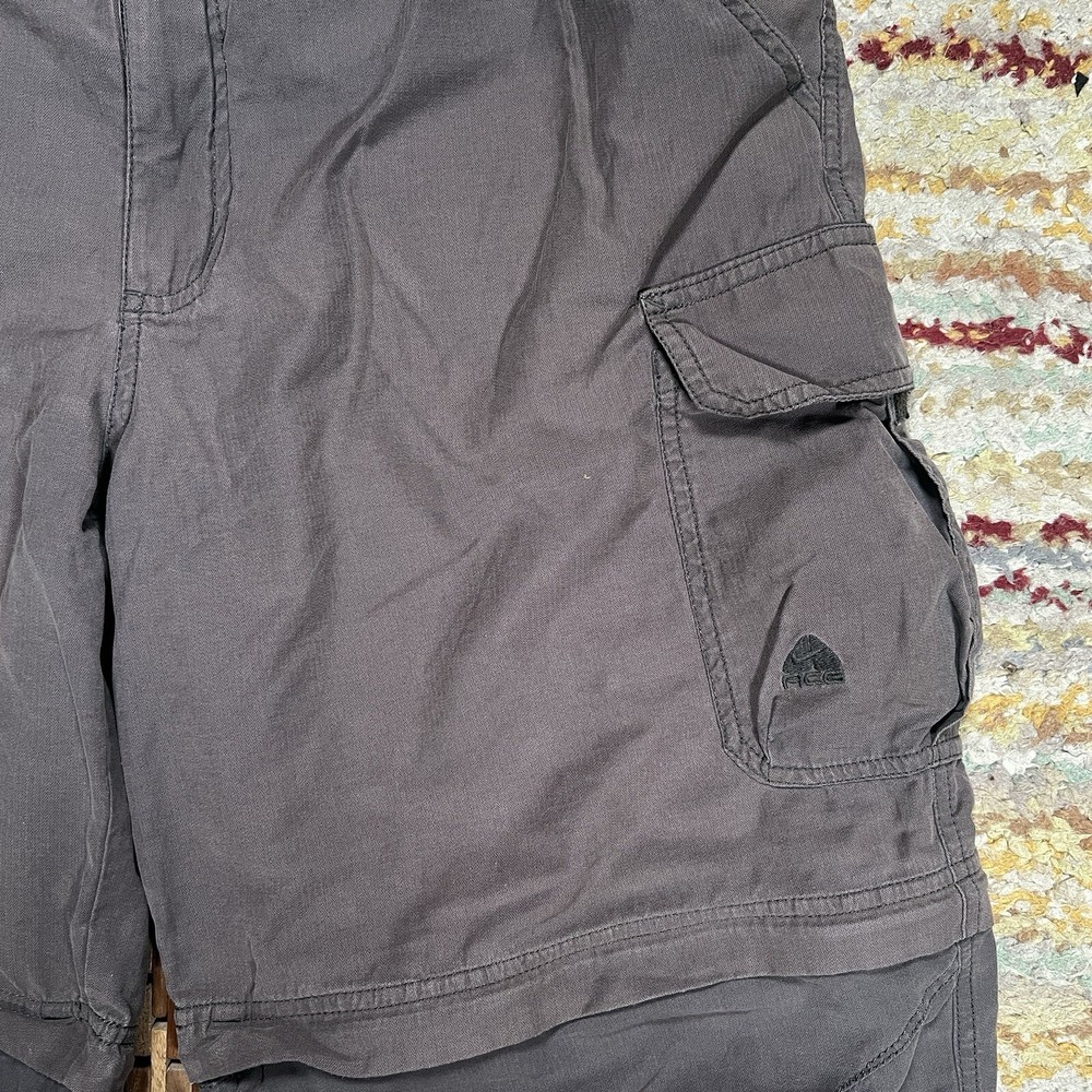 Elevate your style and comfort with these Nike Nikelab ACG Transformer Concertible Cargo Pants. These pants are perfect for any occasion, whether you're going on a hike or just running errands. The gray color and cargo style give them a sleek and modern look, while the zip closure and regular size ensure a comfortable fit. The pants are made for men and have a 28-inch inseam, making them the perfect length for any wearer. They are crafted from high-quality materials, ensuring durability and long-lasting wear. Whether you're a fan of Nike or just looking for a stylish and comfortable pair of pants, these Nike Nikelab ACG Transformer Concertible Cargo Pants are the perfect choice.