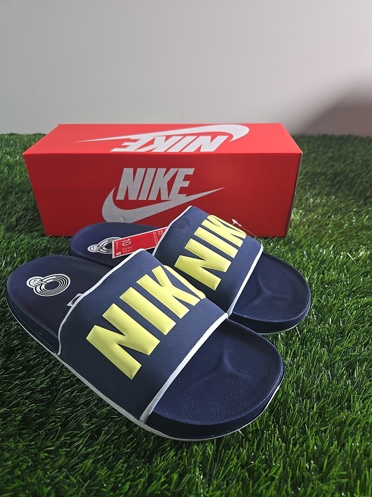 The Nike Offcourt Slides in navy blue size 10, are a stylish and comfortable option for casual wear. With a slip-on design and lightweight synthetic outsole, these sandals are perfect for travel, activewear, parties, and everyday outings. Featuring Nike's iconic logo accents and cushioned insole, these sandals offer both style and comfort for all-day wear. The breathable design and durable construction make them a versatile choice for all seasons.