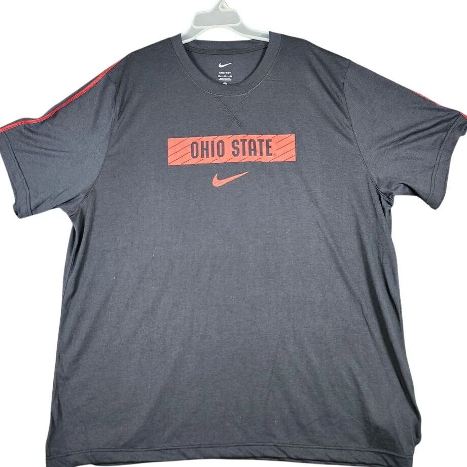 Nike Ohio State Buckeyes athletic t-shirt in excellent condition. Features Dri-FIT moisture-wicking technology, red stripe detail on sleeves, and Ohio State graphic print on front. Gray base with red accents. Perfect for athletic wear. Color: Gray Department: Men Type: T-Shirt Style: Basic Performance/Activity: Training, Weightlifting, Running & Jogging, School, Football Features: Moisture Wicking, Quick Dry, Breathable, Dri-FIT Technology, Athletic Performance Sleeve Length: Short Sleeve Closure: Pullover Fabric Type: Jersey Neckline: Crew Neck Keywords: ohio state, buckeyes, nike, dri fit, performance, athletic wear, college, sports, workout, training, moisture wicking, gym shirt all items have been cleaned and disinfected we stand behind all items we sell so please contact us if you have an issue with any order