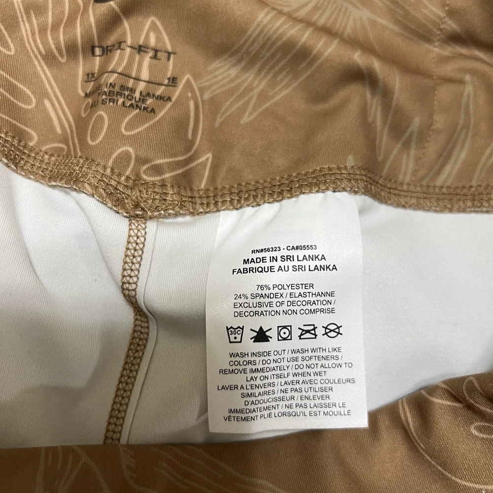 Nike One Luxe Dri-Fit Leggings Women’s 1X Bronze Gold Floral High Rise Yoga Leggings are brand new with tags. No defects or stains. Smoke free and pet free home. Waist-33”, length-33”, inseam-24”, and rise-11”. We list new stuff everyday! Feel free to send offers anytime! Please review all pictures and ask any questions you’d like before purchasing! Shipping next business day! Elevate your activewear game with these Nike One Luxe Dri-Fit leggings. The bronze and gold floral pattern adds a touch of feminine charm to these plus-size leggings, designed for women with a waist size of 33 inches and inseam of 24 inches. The high-rise waist and skinny leg style provide a comfortable and flattering fit, while the elastic waist and compression area on the waist and legs offer added support during gym and training sessions, yoga, and running and jogging.