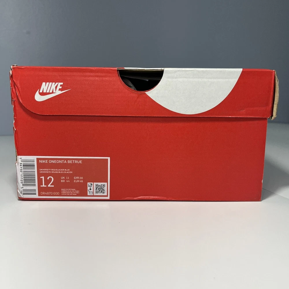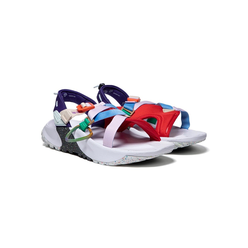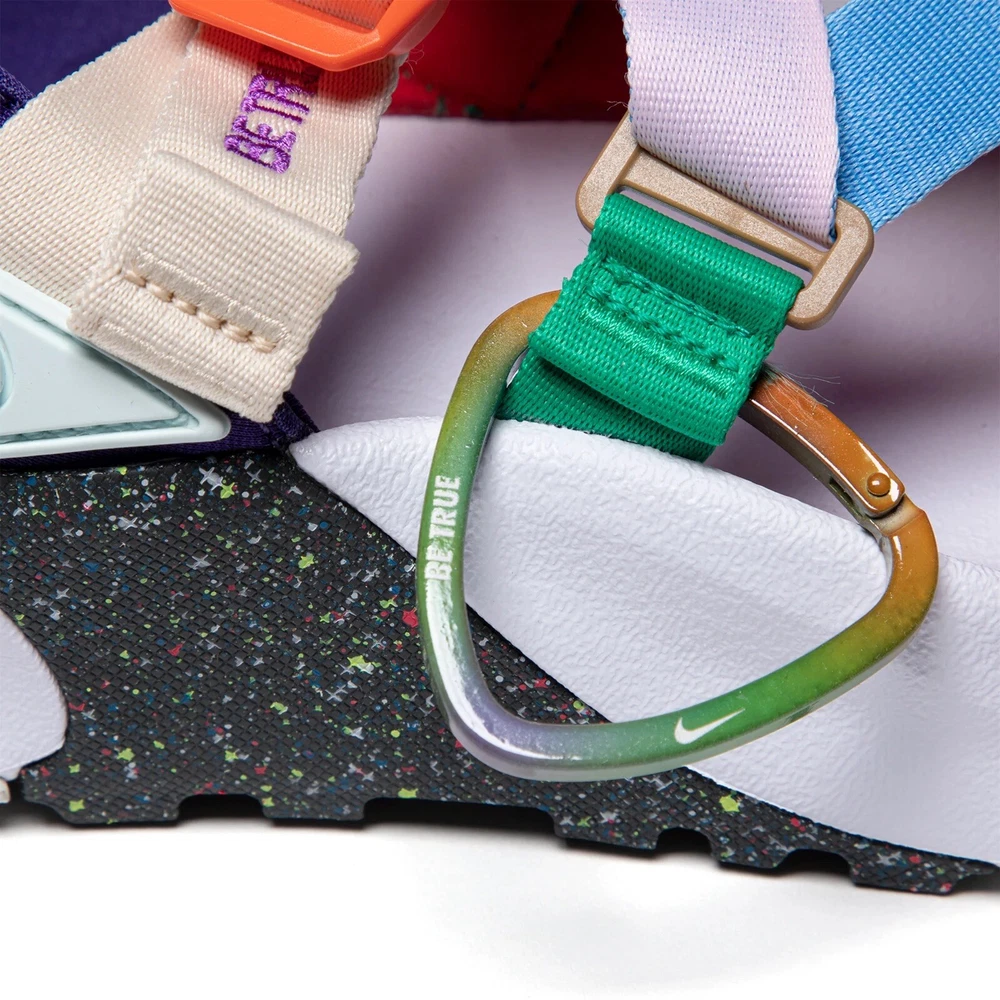 Nike Oneonta Betrue Sandals Mens Size 12 Be True Rainbow Carabiner DR4870-600. Condition is New with tags and box. Nike's Oneonta "Be True" sandals take their name from the Columbia River falls that flow through the labels home state. The sandals feature a rainbow of interlacing webbing and neoprene straps and embroidered lettering. Adjustable fastenings, cinch cord at the heel, a contoured footbed and flecked lug soles provide comfort and superior grip on uneven surfaces. Strap in-the city, sand, and mountains are calling. Highlights: • multicolor webbing neoprene • lightweight and durable construction • embroidered motif • crossover strap detail • open toe • ankle strap • toggle fastening • chunky rubber sole • paint-speckled rugged outsole Color Way: University Red, Glacier Blue, Pink Foam Composition: 100% Rubber Sole with Fabric Outer and Lining