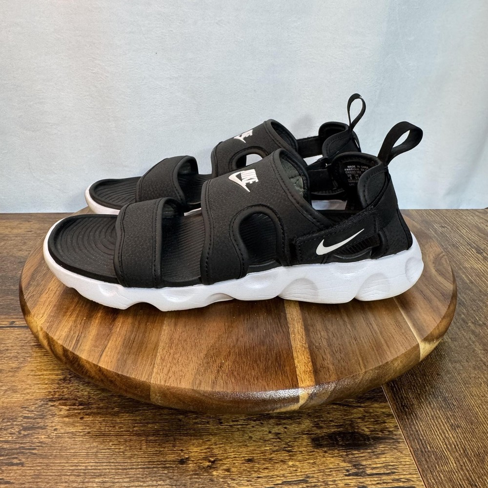 Nike Owaysis Sandals Womens Size 8 Black White CK9283-002 Comfort Strappy Shoes Condition: Good pre-owned condition, light wear and some signs of use on the outsoles. Uppers and straps are in excellent shape with no major flaws. Please review all photos for details on outsole cleanliness and tread wear. Style: Owaysis open toe sandals with black adjustable straps and soft, responsive foam white soles. Features large Nike logos and signature Swoosh branding on straps and heel pulls. Size (Women's): US 8, UK 5.5, EUR 39, CM 25 (Tag: XS) Model/Style Code: CK9283-002 Main color: Black with white soles and white logo details Made in China UPC: 00193658089913 Date of Manufacture: 12/2020 Perfect for casual wear, summer walking, or sporty lifestyle looks. Lightweight, breathable, and easy to slip on/off.