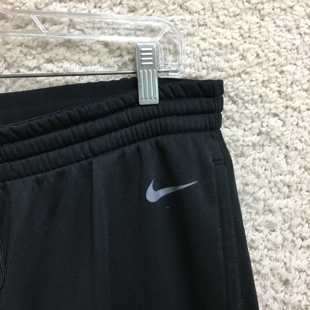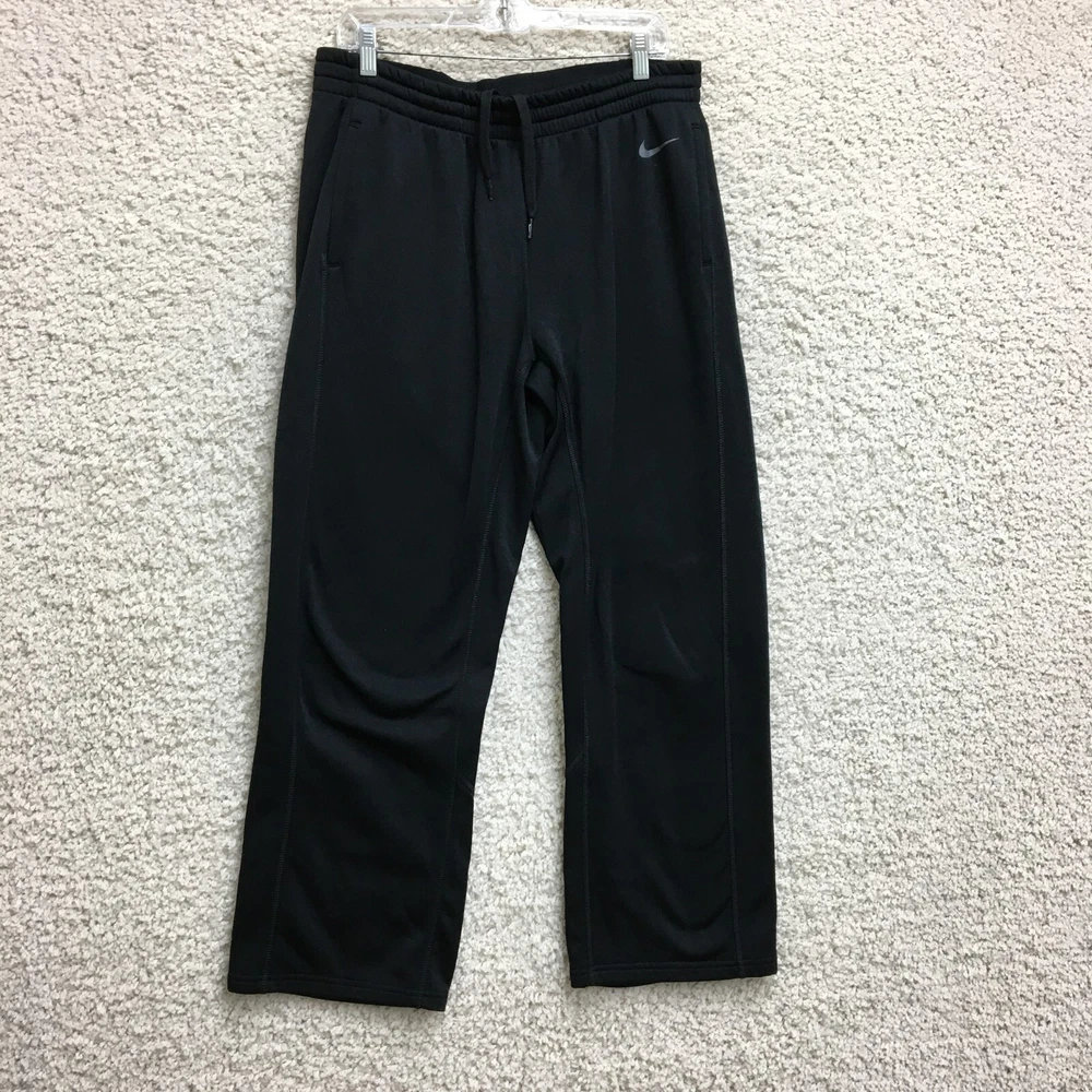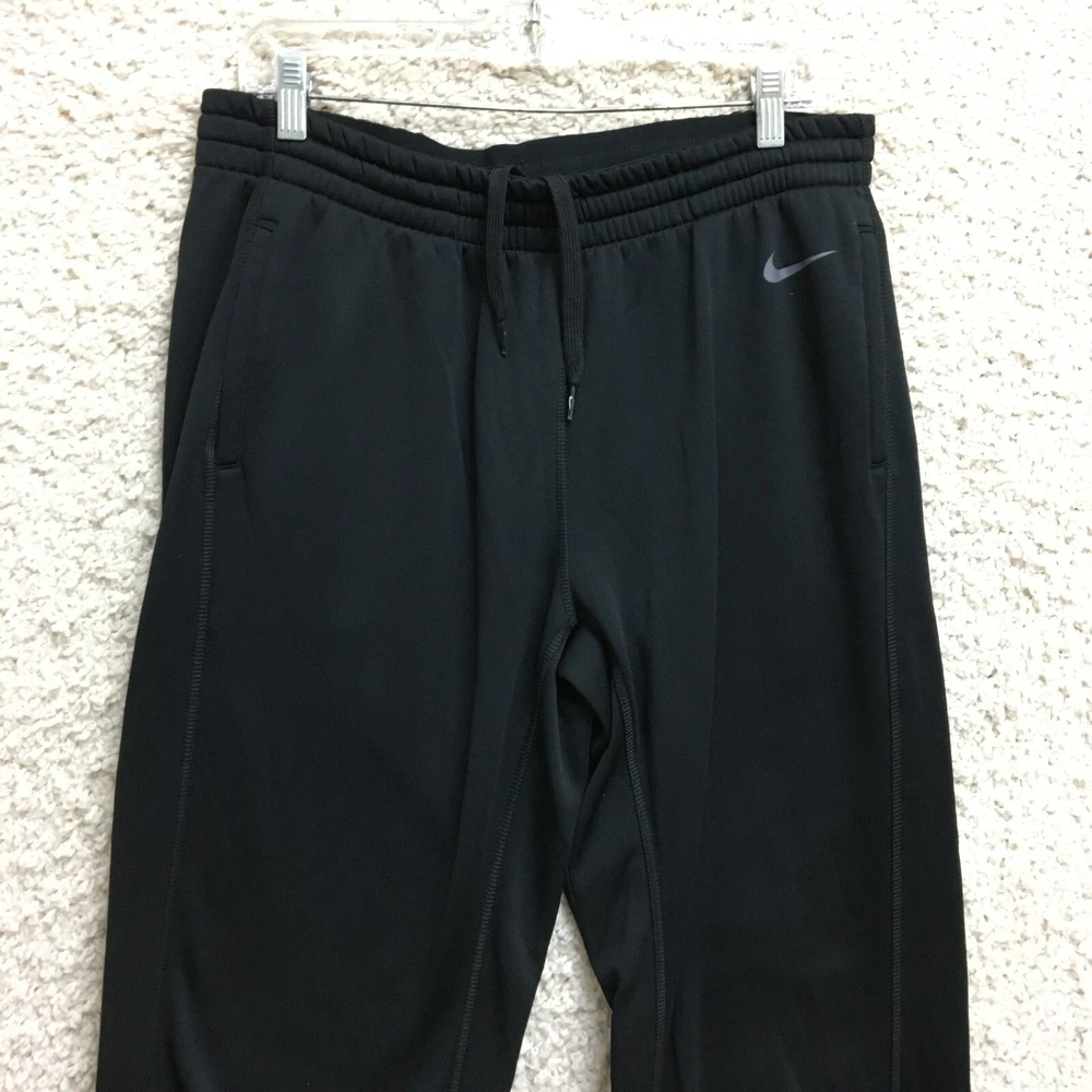Features: Breathable, Comfort, Stretch Closure: Drawstring Style: Sweatpants Department: Men Size: L Type: Pants Color: Black Season: Fall, Spring, Summer Size Type: Regular Country/Region of Manufacture: Vietnam Fit: Athletic Brand: Nike Waist Size: 33 in Garment Care: Machine Washable Seller Notes: “Good Used Condition. Please, See Pictures for Full Condition and Measurements.” Material: Polyester Occasion: Activewear, Casual Leg Style: Straight Inseam: 29 in Compression Area: Waist Fabric Type: Blended Fabric Theme: American, Classic, Logo, Modern, Outdoor Pattern: Solid Product Line: Nike Dri-FIT Performance/Activity: Cross Training, Gym & Training, Running & Jogging