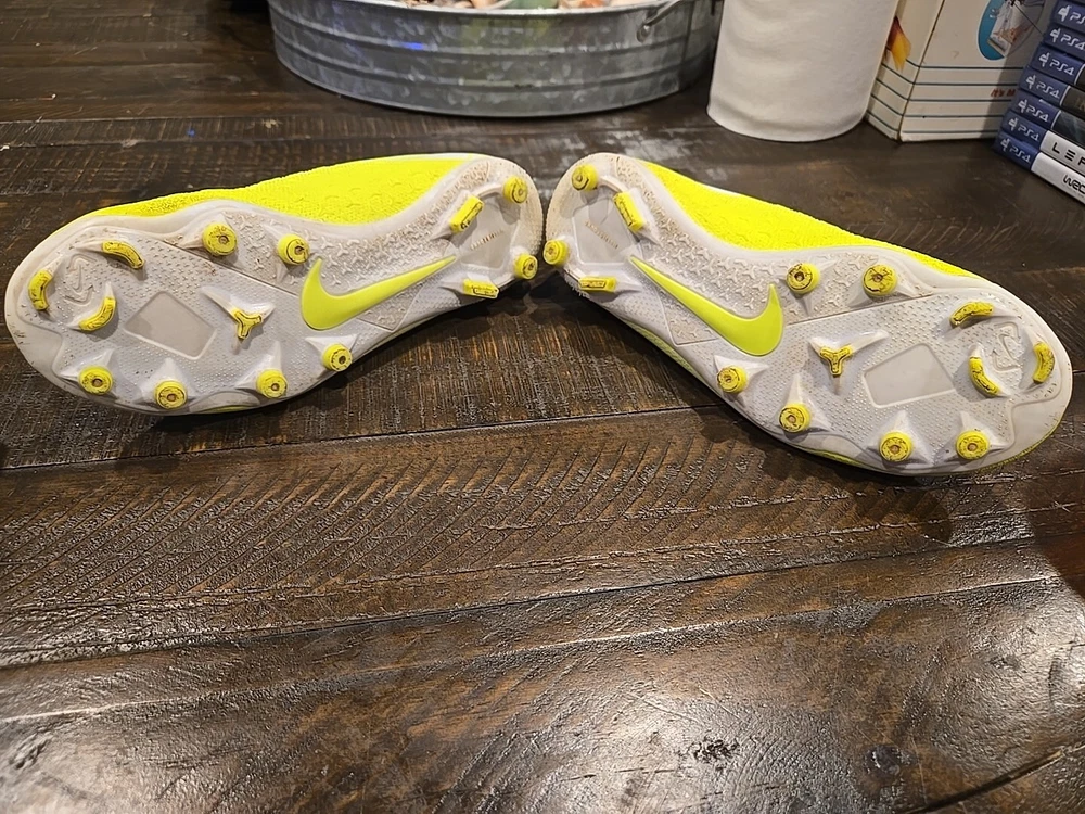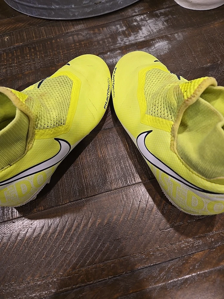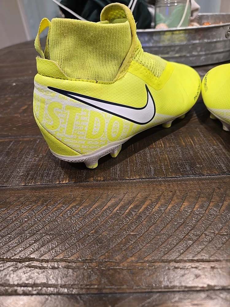 Elevate your soccer game with these Nike Phantom VSN Academy DF FG/MG Soccer Cleats. Designed for youth size 3, these cleats are perfect for soccer players who want to take their game to the next level. Made in Indonesia, these cleats feature a striking yellow and green colorway that is sure to turn heads on the field. The Nike Phantom Vision model is known for its superior performance and comfort, making it a popular choice among soccer players of all levels. Whether you're playing on a team or just practicing on your own, these cleats are the perfect addition to your soccer gear. Get ready to dominate the field in style with these Nike Phantom VSN Academy DF FG/MG Soccer Cleats.