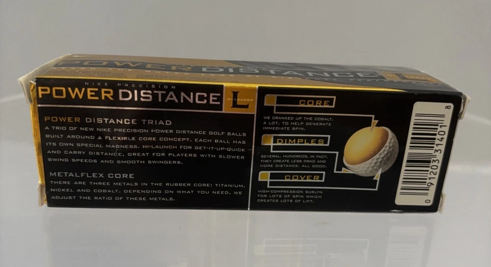 Model: Power Distance Sport/Activity: Golf Ball Type: Tour Preferred Number of Items in Set: 3 UPC: Does not apply Number in Pack: 12 Country/Region of Manufacture: Malaysia Color: White Brand: Nike Features: Distance, Cobalt Loaded, In Metalflex Core, Nike Golfs Highest Long Ball gtin13: Does not apply