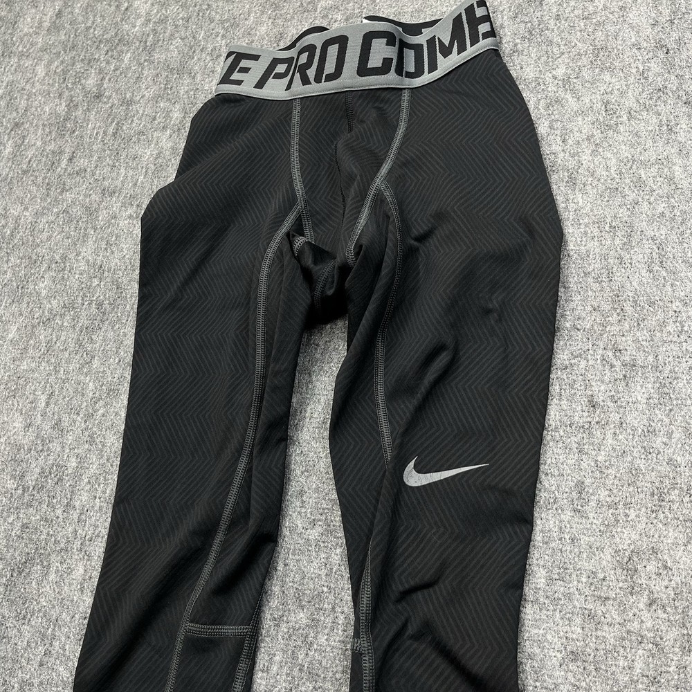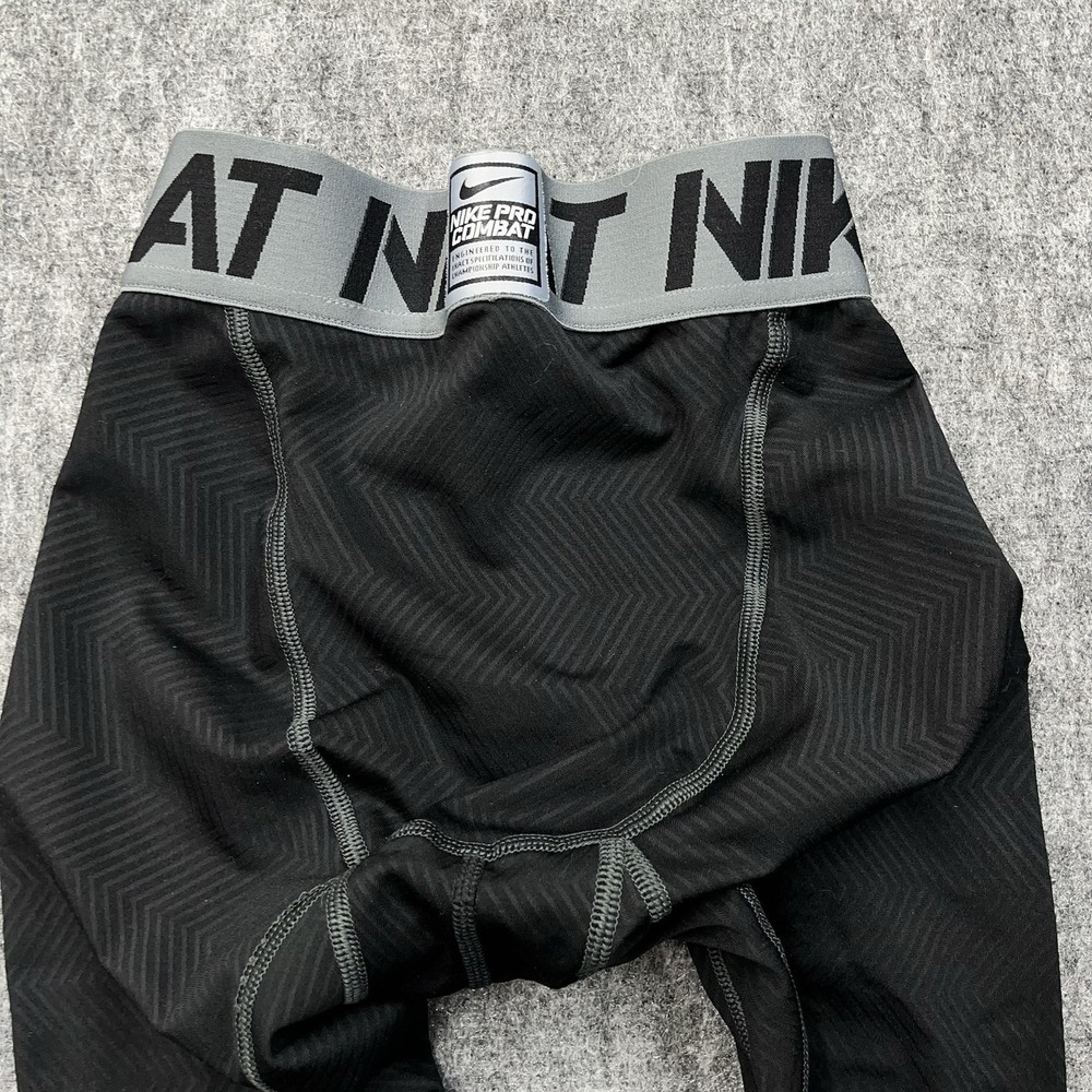 Style: Compression Type: Leggings Personalize: No Material: Polyester Blend, Polyester, Spandex Country/Region of Manufacture: Sri Lanka Department: Men Garment Care: Machine Washable Compression Area: Leg Vintage: No Season: Winter, Summer, Spring, Fall Performance/Activity: Running & Jogging, Cross Training, Gym & Training, CrossFit, Bodybuilding, Weightlifting Features: Elastic Waist Size: S Theme: Sports Product Line: Nike Pro Combat Size Type: Regular Color: Black Fabric Type: Blended Fabric Closure: Pull On Occasion: Activewear Brand: Nike