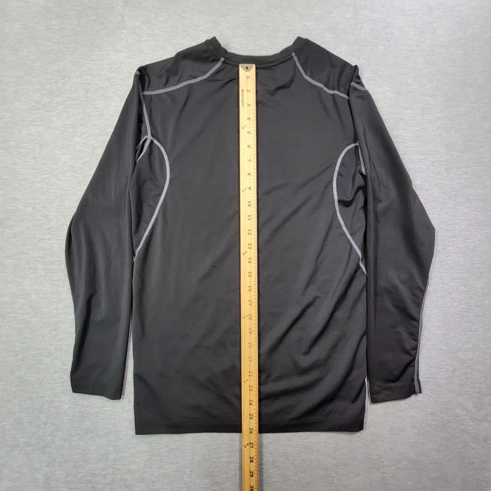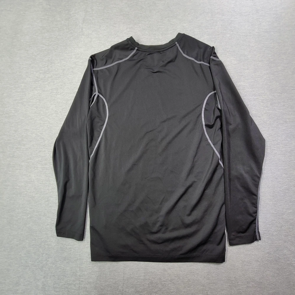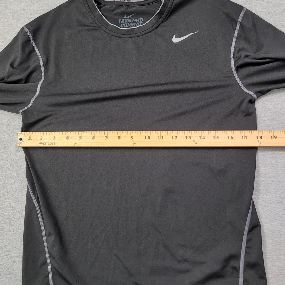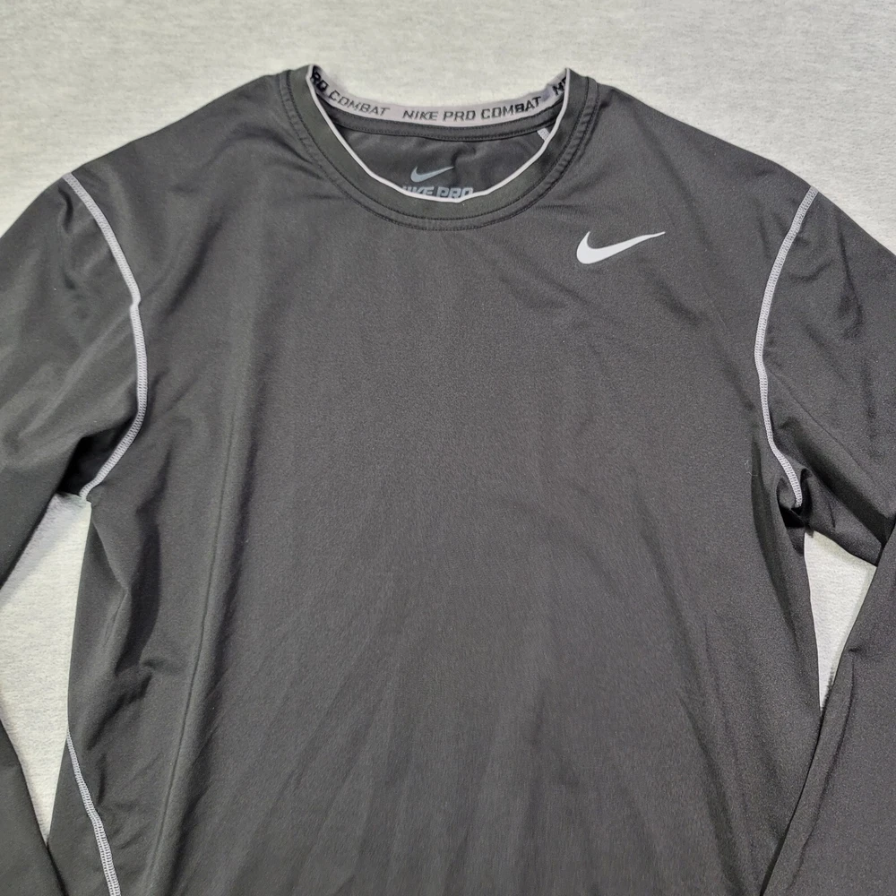 Elevate your activewear game with this Nike Pro T-Shirt for men in size XL. The classic black color and solid pattern make it a versatile addition to your workout wardrobe. The shirt features a crew neckline, long sleeves with a classic/fitted sleeve type, and a pullover closure. Crafted from a blend of polyester and spandex, this shirt offers a comfortable and athletic fit, with stretch features for added convenience. The Nike Dri-Fit model ensures that you stay dry and comfortable during your training and running sessions. This shirt also showcases the iconic Nike Swoosh logo, adding a touch of style to your workout outfit.