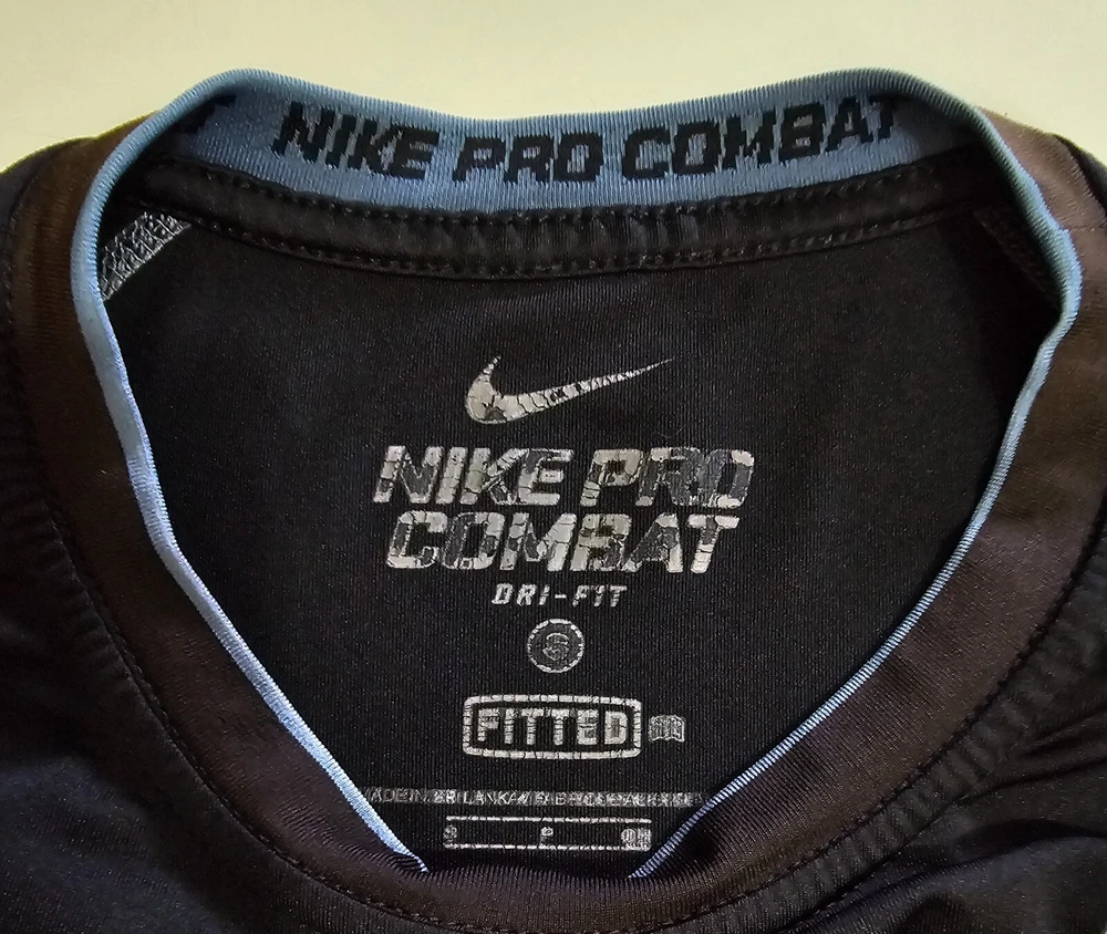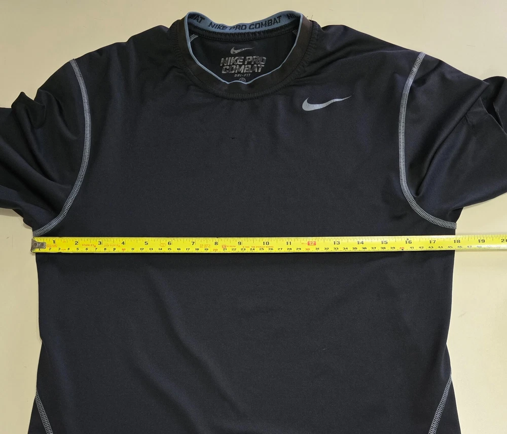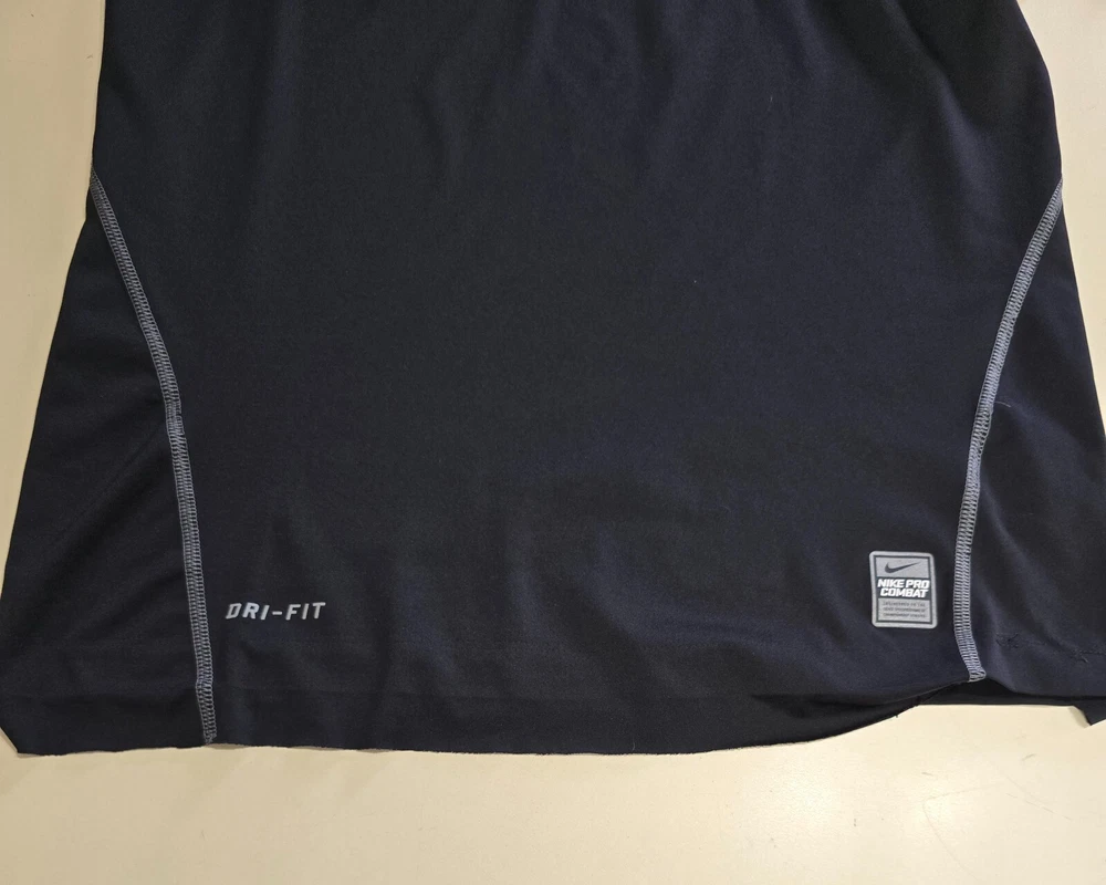 An Incredible one time opportunity to own this Nike Pro Combat DRI-FIT Fitted Black Performance Sportswear Shirt Top Sz S *NOTE***See last photos for incomplete hem loose on bottom and sleeve, logo cracks, snags front & back, collar discoloration ***PIT TO PIT IS 18" **AS IS **No returns accepted ***VIEW ALL MEASUREMENT PHOTOS FOR PROPER FIT**** Explore the in depth photos showing every angle possible as if you have it in your hands. Thank you from all of us at DPACTIVEXPRESS ***Note 1: Display stands not included with all items unless specifically stated in the title. ****Note 2: DPACTIVEXPRESS carries a diverse collection of brands in this category, so we take a pit to pit measurement photo. ~~~~~~~ITEM IN LISTING PHOTOS IS THE ITEM YOU WILL RECEIVE~~~~~