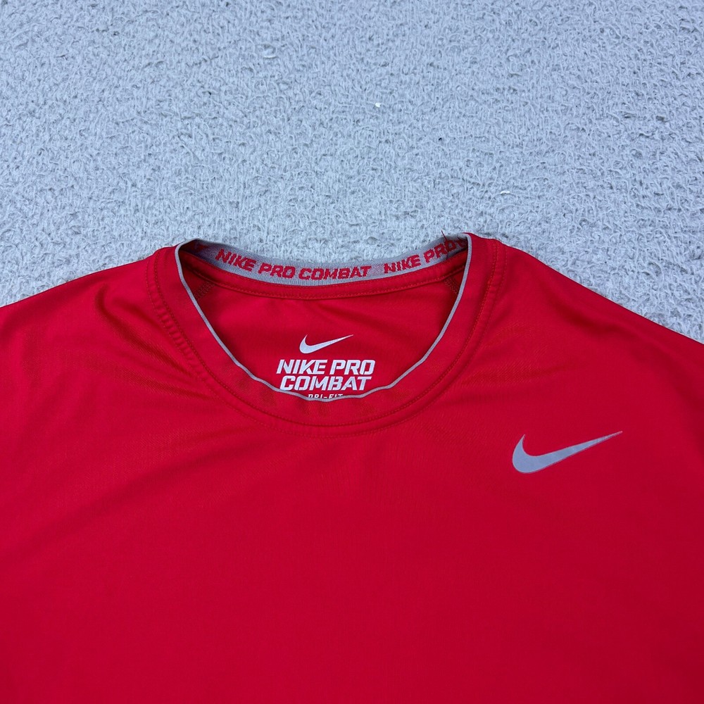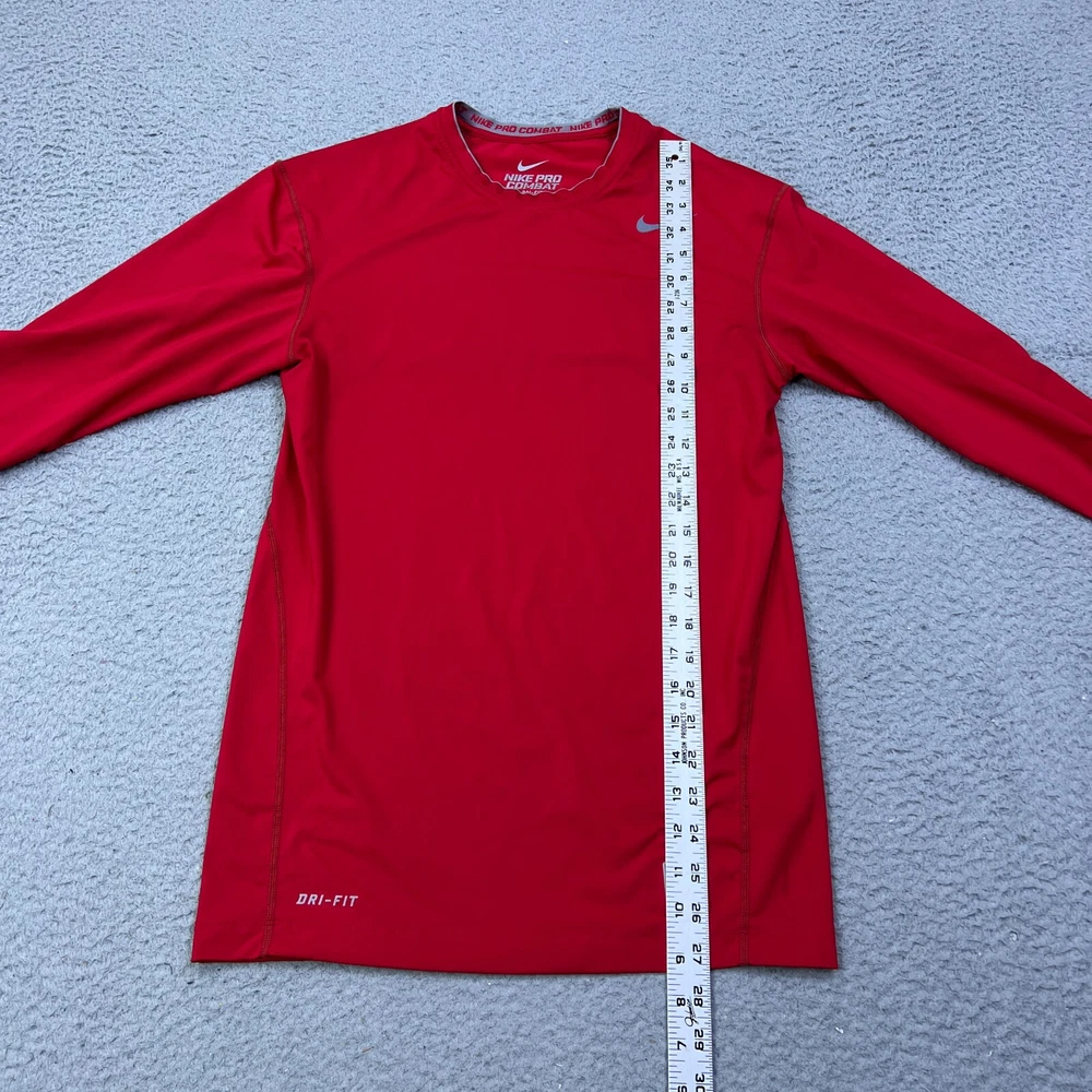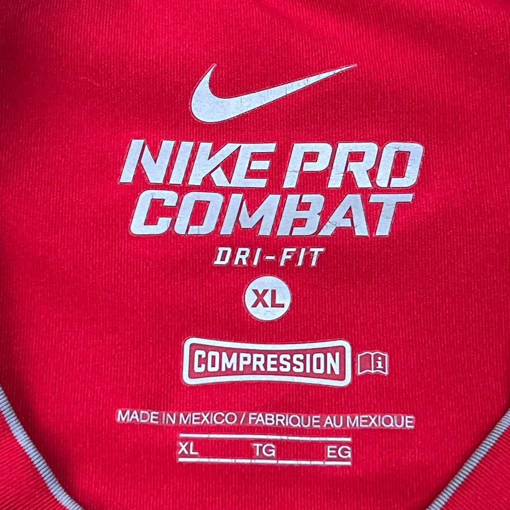 This compression shirt fits like a dream—super snug and supportive for workouts. The Dri-Fit tech keeps me dry, and the red Swoosh looks sharp. The spot shown in pics is barely noticeable. Great quality for the price! Just check your measurements before buying. Super happy with this find!