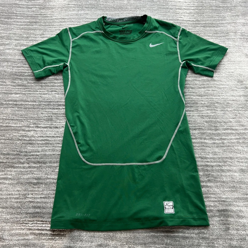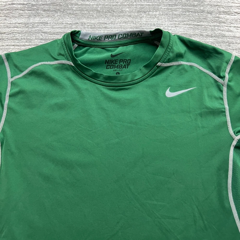 Nike Pro Combat Shirt Size L Mens Compression Fitted Dri-Fit Short Sleeve Green Please View Photos Closely. Please note, item measurements are approximate and in the photos. Items are carefully inspected and sealed after photos, so we cannot check additional measurements or details for you. All clothing has been cleaned/washed per eBay standards. We store our items in a pet and smoke free environment. We ship daily, and have 30 day returns. Thank you!