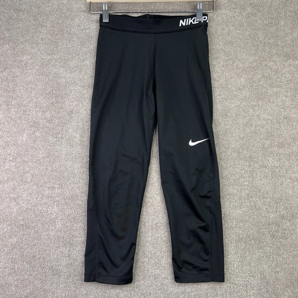 Nike Pro Compression Capri Womens Small Black Crop Dri-Fit Training 725468 Item is in good condition. Free from spots or stains and shows normal wear or better. Item measurements are in the photos and as follows: Waist: 23" Inseam: 20" Shipping and Returns I usually ship within 2 business days so you get your order fast! I accept no hassle returns for items within 30 days, even if you just do not like it. Please feel free to ask any questions you may have. I answer most questions as soon as possible and thanks for looking!