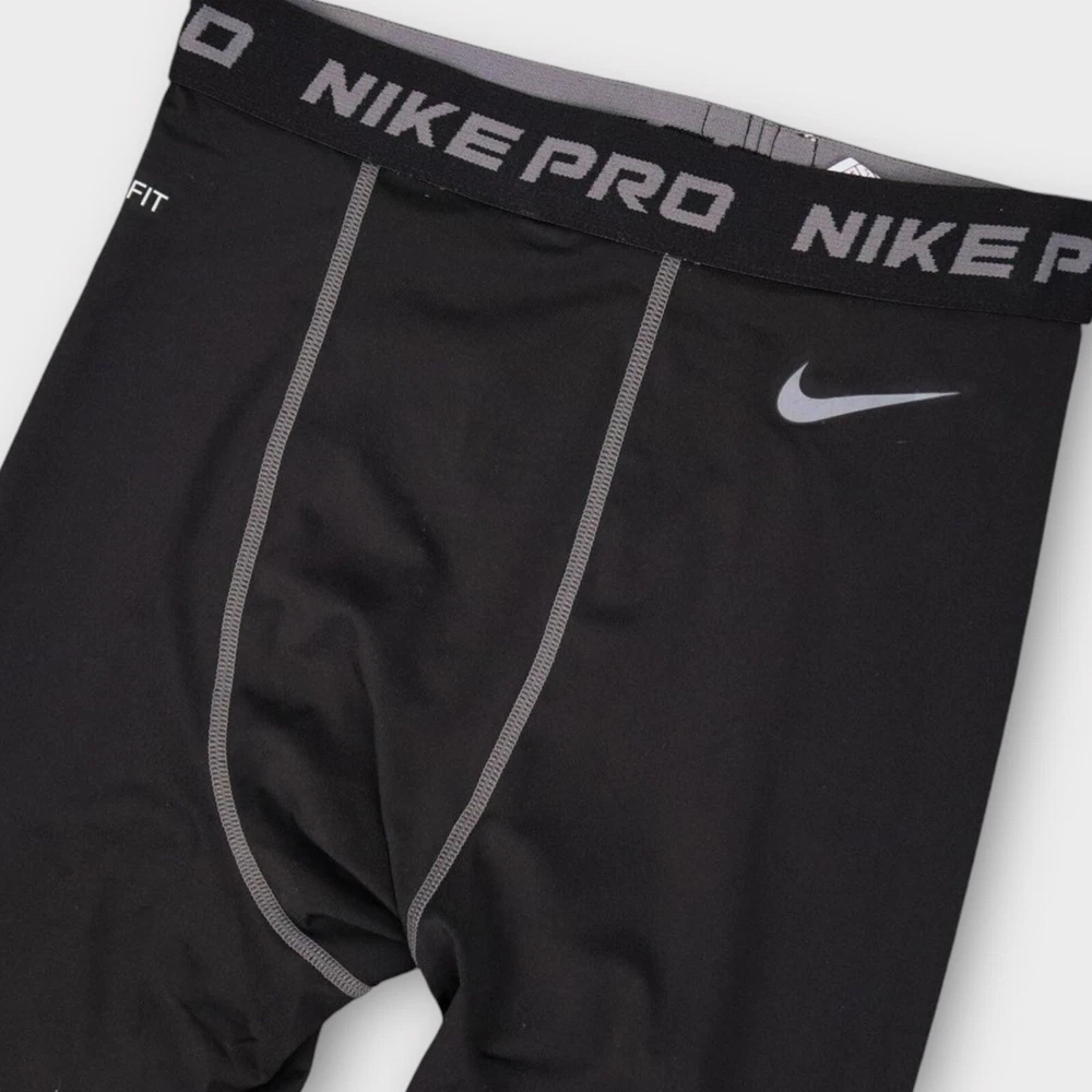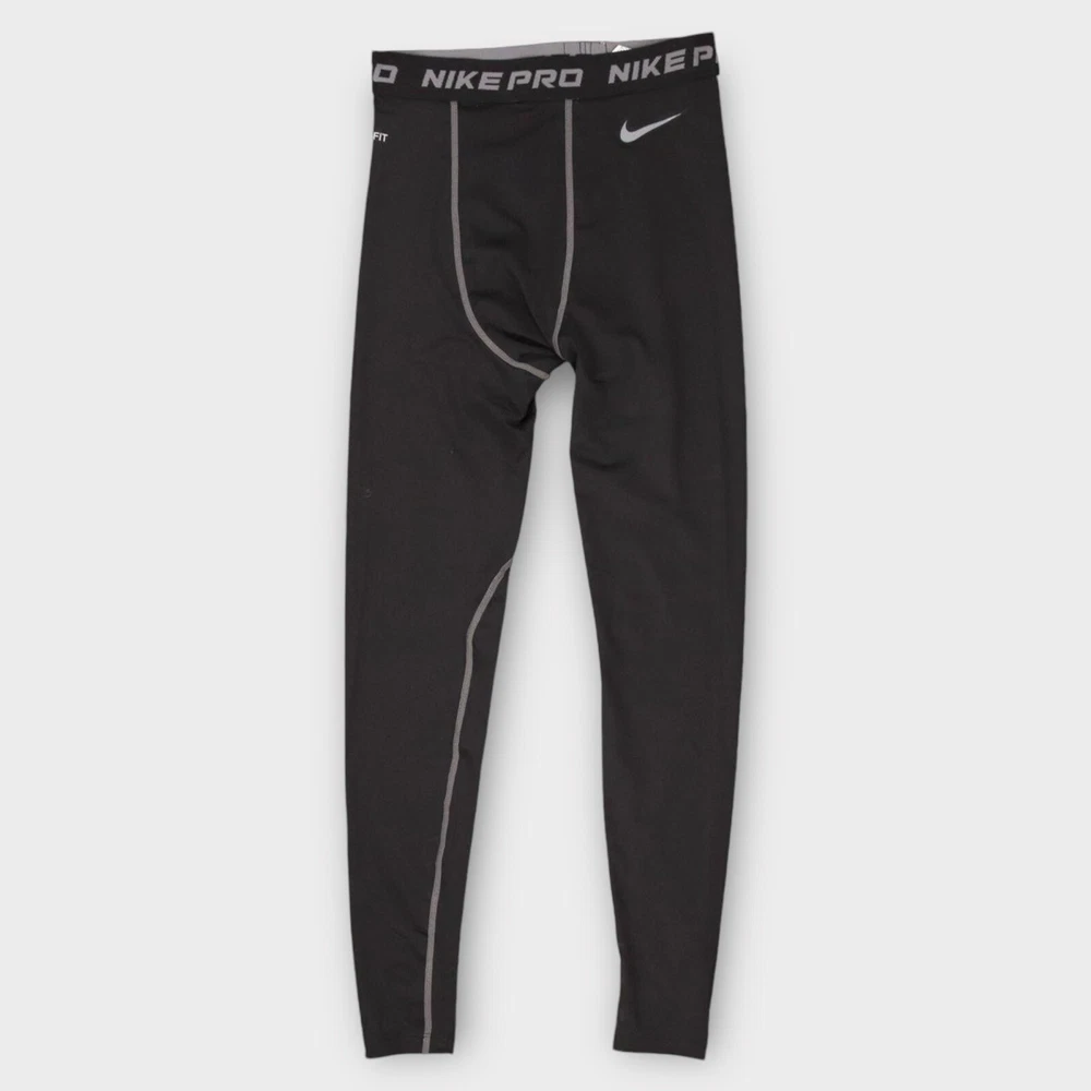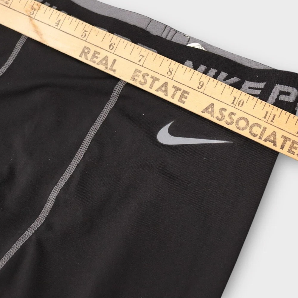 Elevate your activewear game with these Nike Pro Compression Pants in size small. These pants are perfect for any sports activity like running, basketball, football, cross-training, or gym & training. The pants are made of a blended fabric of polyester and spandex, which makes them lightweight and comfortable to wear. The pants feature an elastic waistband and tapered leg style, with compression areas in the waist, thigh, and leg. The solid black color and Nike logo theme make these pants perfect for any athleisure outfit. Garment care is easy as these pants are machine washable. Get ready to crush your workout goals with these Nike Pro Compression Pants. Tag Size: Men’s Small Best Fit: * Men: S Approximate Flat Measurements: * Waist: 11.5 * In Seam: 26” Condition: No Noticeable Flaws All items are second hand, many being vintage and may have small imperfections. Anything major is noted.