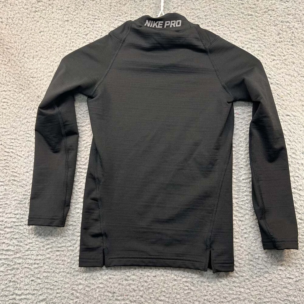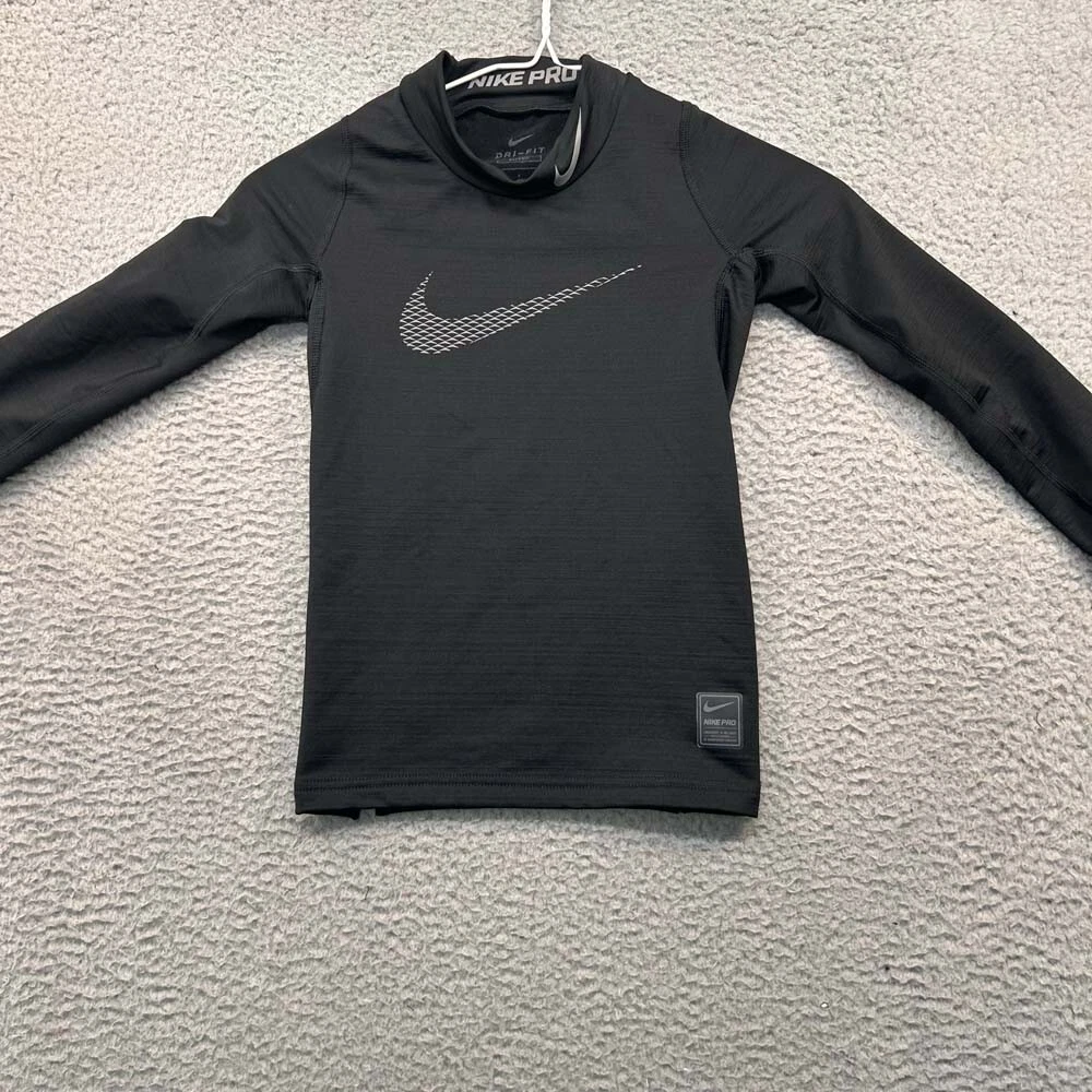 Size: S Pattern: Solid Material: Polyester Blend Color: Black Vintage: No Product Line: Nike Pro Sleeve Length: Long Sleeve Department: Boys Garment Care: Machine Washable Size Type: Regular Closure: Pullover Type: T-Shirt Brand: Nike Fabric Type: Woven Occasion: Casual