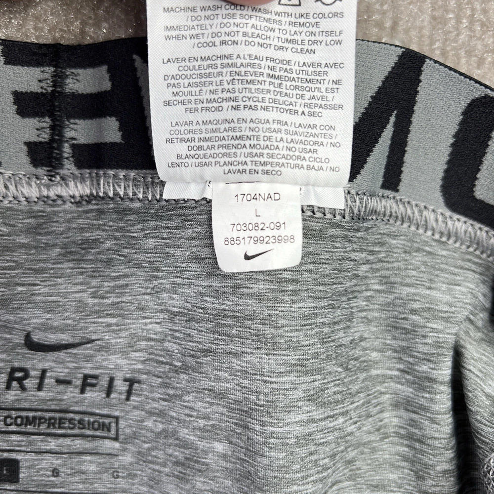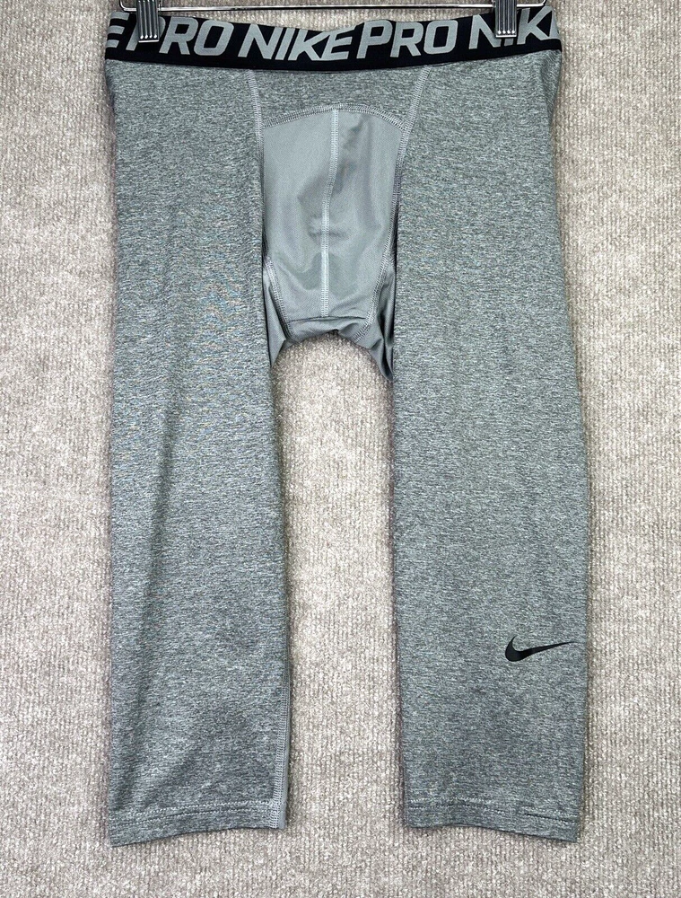 Waist Size: 28 in Size Type: Regular Fit: Athletic Product Line: Nike Pro Style: Compression MPN: 703082 Theme: Athleisure, Sports Department: Men Color: Gray Country/Region of Manufacture: Thailand Performance/Activity: Basketball, CrossFit, Cross Training, Cycling, Gym & Training, Running & Jogging Size: L Occasion: Activewear, Casual, Workwear Fabric Type: Blended Fabric Garment Care: Machine Washable Features: Compression, Elastic Waist, Lightweight, Stretch Brand: Nike Vintage: No Material: Polyester, Spandex Inseam: 18 in Pattern: Solid Leg Style: Tapered Closure: Pull On Type: Leggings Season: Fall, Spring, Summer, Winter Compression Area: Buttocks, Leg, Thigh