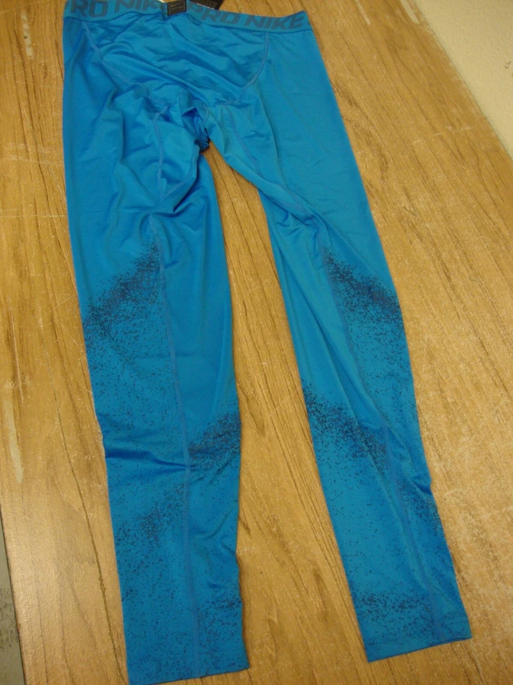 This is a pair of Nike Pro Cool DRI-Fit Compression Tights in size XL for men. The leggings feature a blue "Space Dust" design and offer compression for activewear. They have a pull-on closure and are part of the Nike Pro product line. The style is compression with a space theme, suitable for sports and workouts.