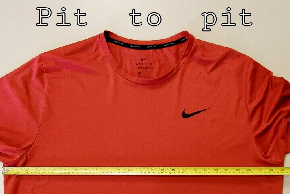 An Incredible one time opportunity to own this Nike Pro Dri Fit Short Sleeve Micro Heather Red Mens Athletic Shirt Sz 2XL ****No remarkable defects ***PIT TO PIT IS 26 in ***VIEW ALL MEASUREMENT PHOTOS FOR PROPER FIT**** Explore the in depth photos showing every angle possible as if you have it in your hands. Thank you from all of us at DPACTIVEXPRESS ***Note 1: Display stands not included with all items unless specifically stated in the title. ****Note 2: DPACTIVEXPRESS carries a diverse collection of brands in this category, so we take a pit to pit measurement photo. ~~~~~~~ITEM IN LISTING PHOTOS IS THE ITEM YOU WILL RECEIVE~~~~~