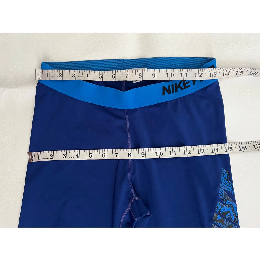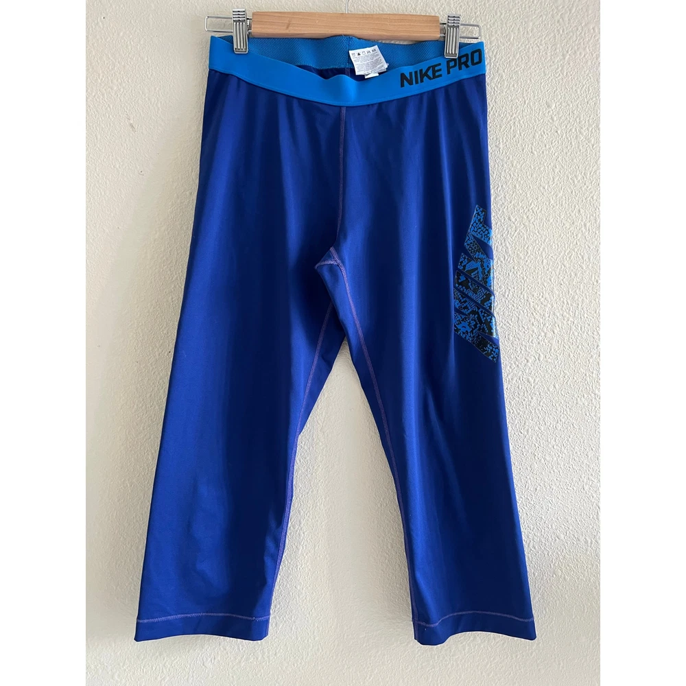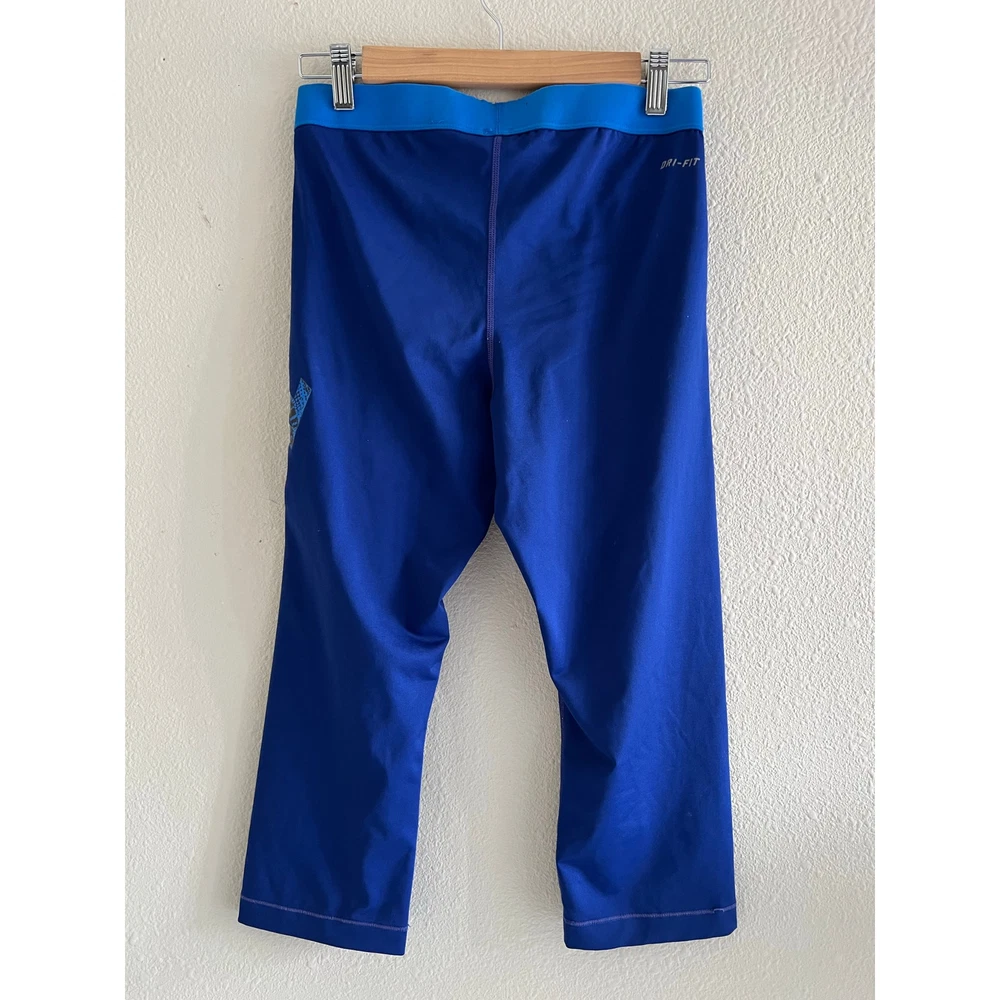 Occasion: Activewear Personalize: No Country/Region of Manufacture: Vietnam Size: L Accents: Logo Style: Capri Department: Women Pattern: Solid Performance/Activity: CrossFit, Running & Jogging, Walking, Yoga Seller Notes: “Good used condition” Features: Stretch, Compression Brand: Nike Theme: Athleisure Season: Spring, Summer, Fall Color: Blue Size Type: Regular Type: Leggings Material: Polyester, Spandex