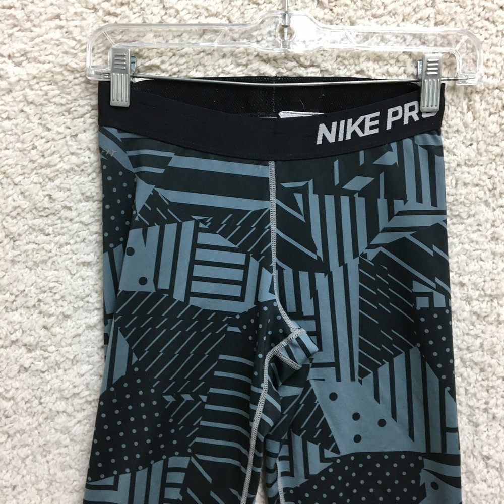 Fabric Type: Knit Size Type: Regular Style: Capri Brand: Nike Features: Breathable, Comfort, Compression, Easy Care, Elastic Waist, Stretch Country of Origin: Vietnam Garment Care: Machine Washable Season: Fall, Spring, Summer Inseam: 19 in Performance/Activity: Cross Training, Gym & Training, Running & Jogging, Yoga Accents: Logo Fabric Wash: Dark Size: S Pattern: Patchwork Color: Blue Type: Leggings Material: Polyester, Spandex Department: Women Waist Size: 24 in Seller Notes: “Good Used Condition. Please, See Pictures for Full Condition and Measurements.” Occasion: Activewear, Casual
