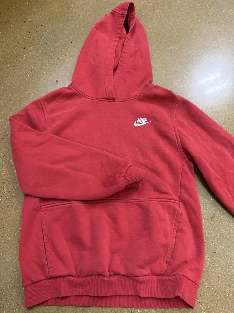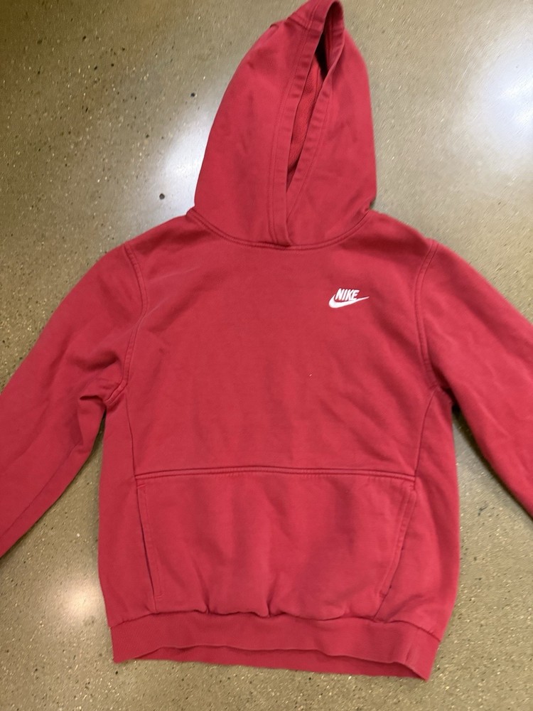 Character: Boy Fit: Regular Style: Pullover Accents: Logo Color: Red Vintage: No Sleeve Length: Long Sleeve Fabric Type: Fleece Pattern: Solid Type: Hoodie Brand: Nike Department: Boys Season: Fall, Spring, Winter Size: XL Occasion: Activewear, Casual Garment Care: Machine Washable Closure: Pullover Material: Polyester Personalize: No Features: Hooded Theme: Sports